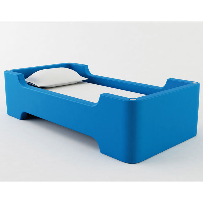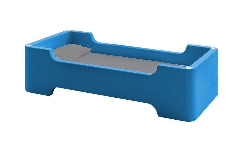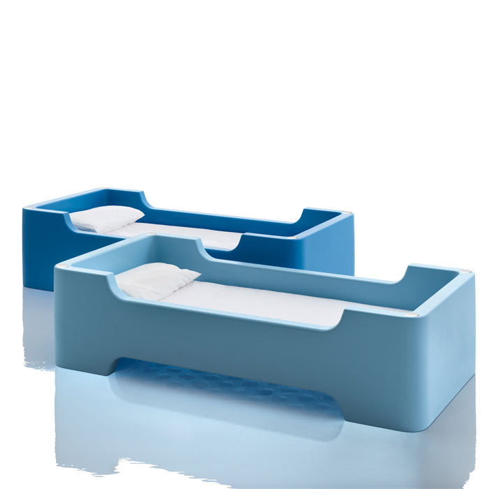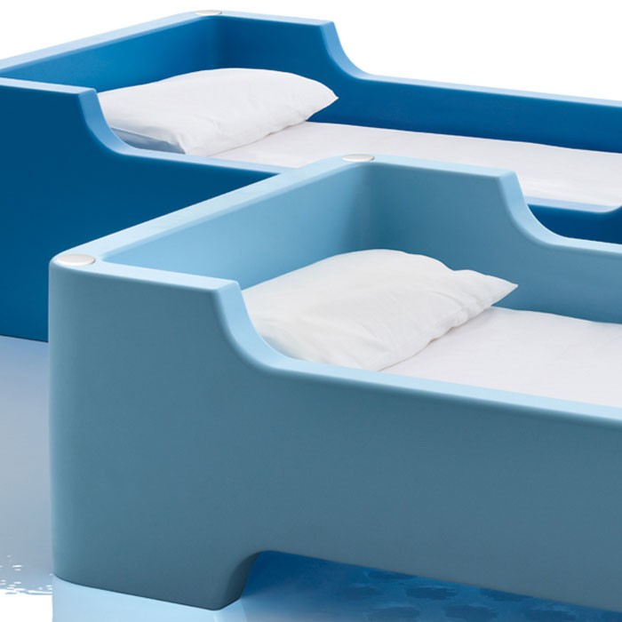 Bunky is a completely modular concept. It is made from rotational-moulded polyethylene and creates a sturdy, secure sleep and play environment for kids. All surfaces are smooth with no sharp edges, and the material is highly durable and easy to clean.
