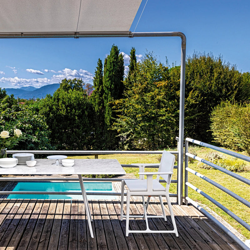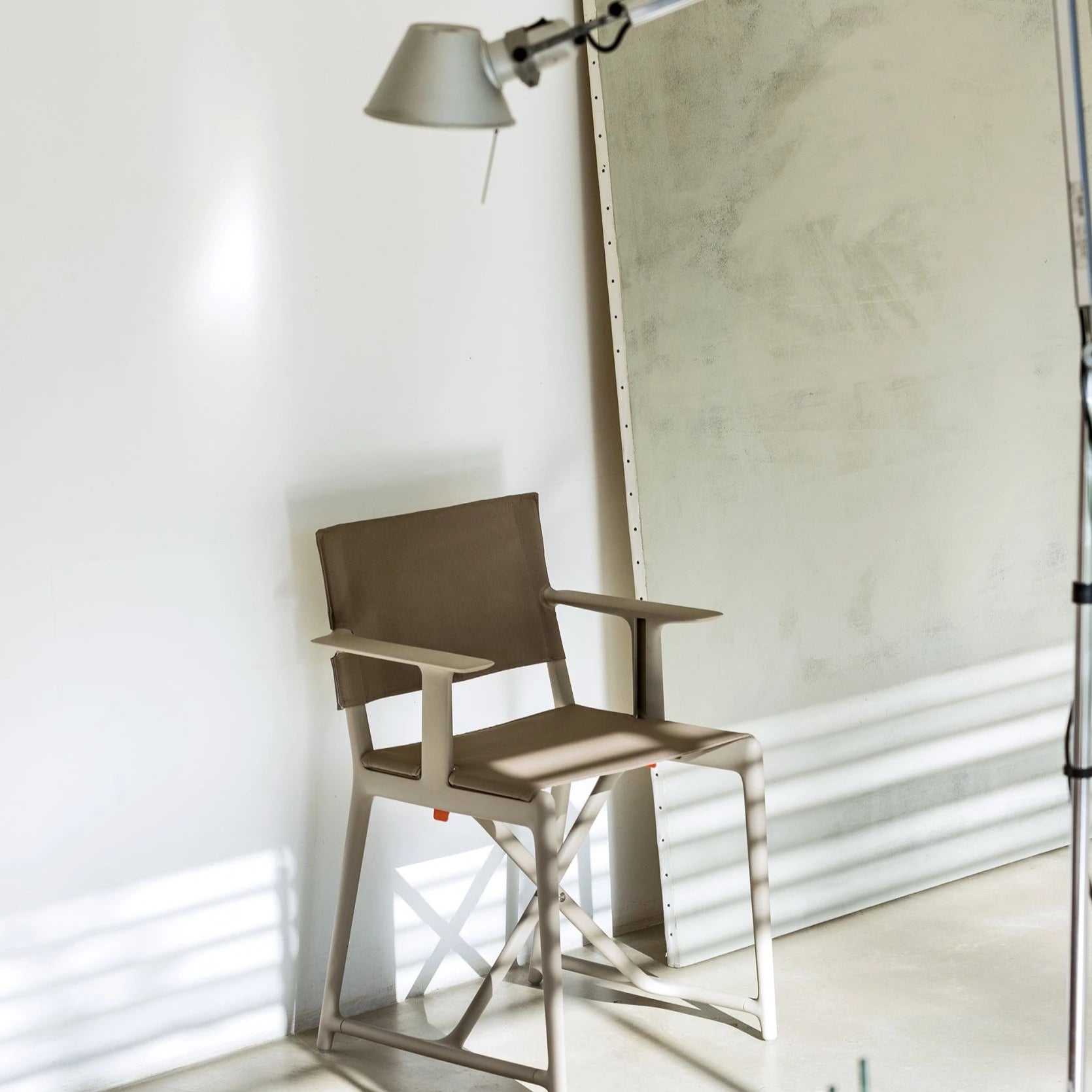 Magis Stanley Folding Director's Chair Philippe Starck - After three years of trying to reinvent the director's chair at Magis' request, Philippe Starck's team designed a modern chair that improved upon the concept with the Magis Stanley Chair. The modern chair features a hardy and functional design that's capable of being collapsed and is constructed with a glass reinforced polypropylene frame and a low maintenance upholstery. The portable chair is a great option for indoor and outdoor use when extra seating is needed and easy to store when it's no longer needed. Bring the Stanley Chair to any space for a quick and simple seating solution.