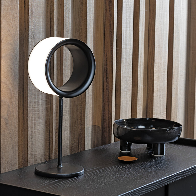Materials: lamp body in painted ABS. Multi-led diffuser in PMMA (polymethylmethacrylate). Base in painted die-cast aluminium. Stem in painted steel tube.