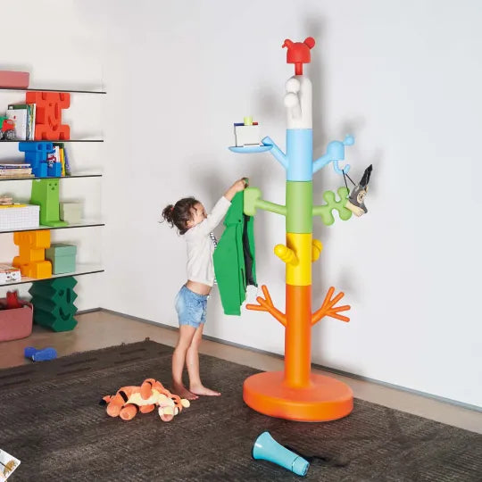 Paradise Tree is an iconic, colourful and fun coat stand where a cat, a bird and a load of clothes live happily together.