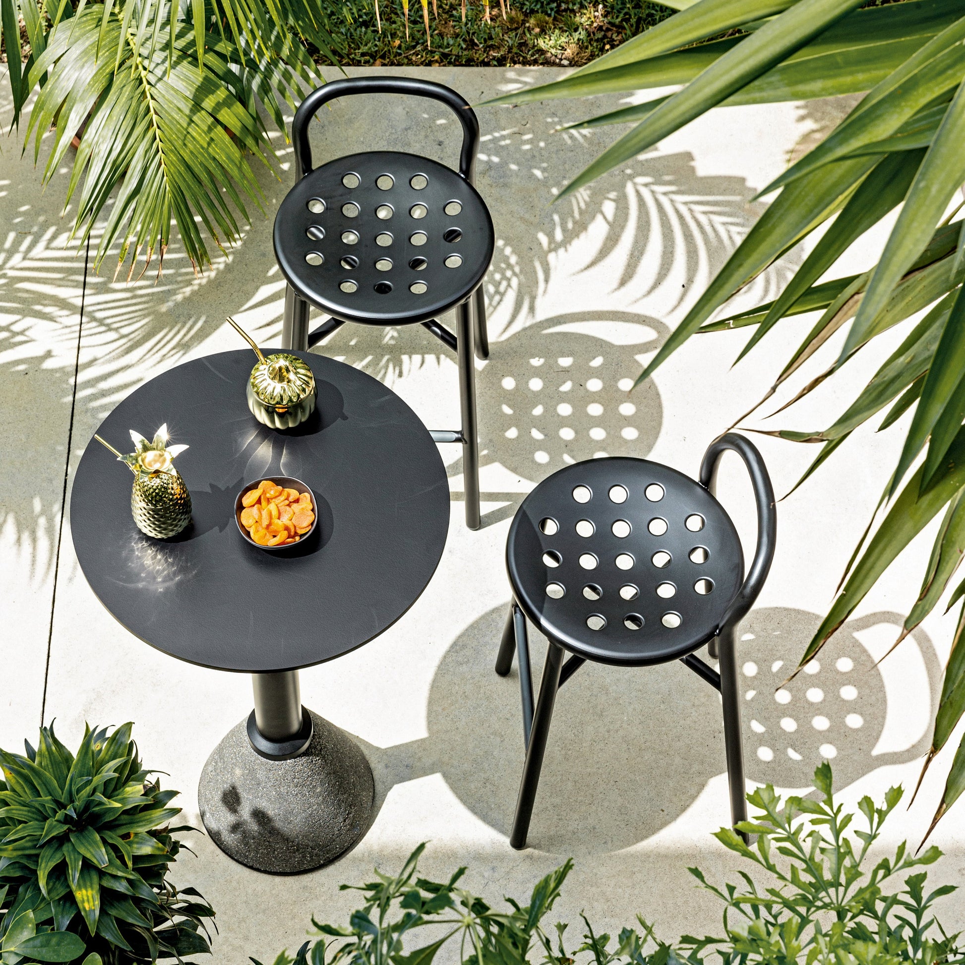 Material: frame in aluminium tube painted in polyester powder. Seat in punched aluminium plate painted in polyester powder