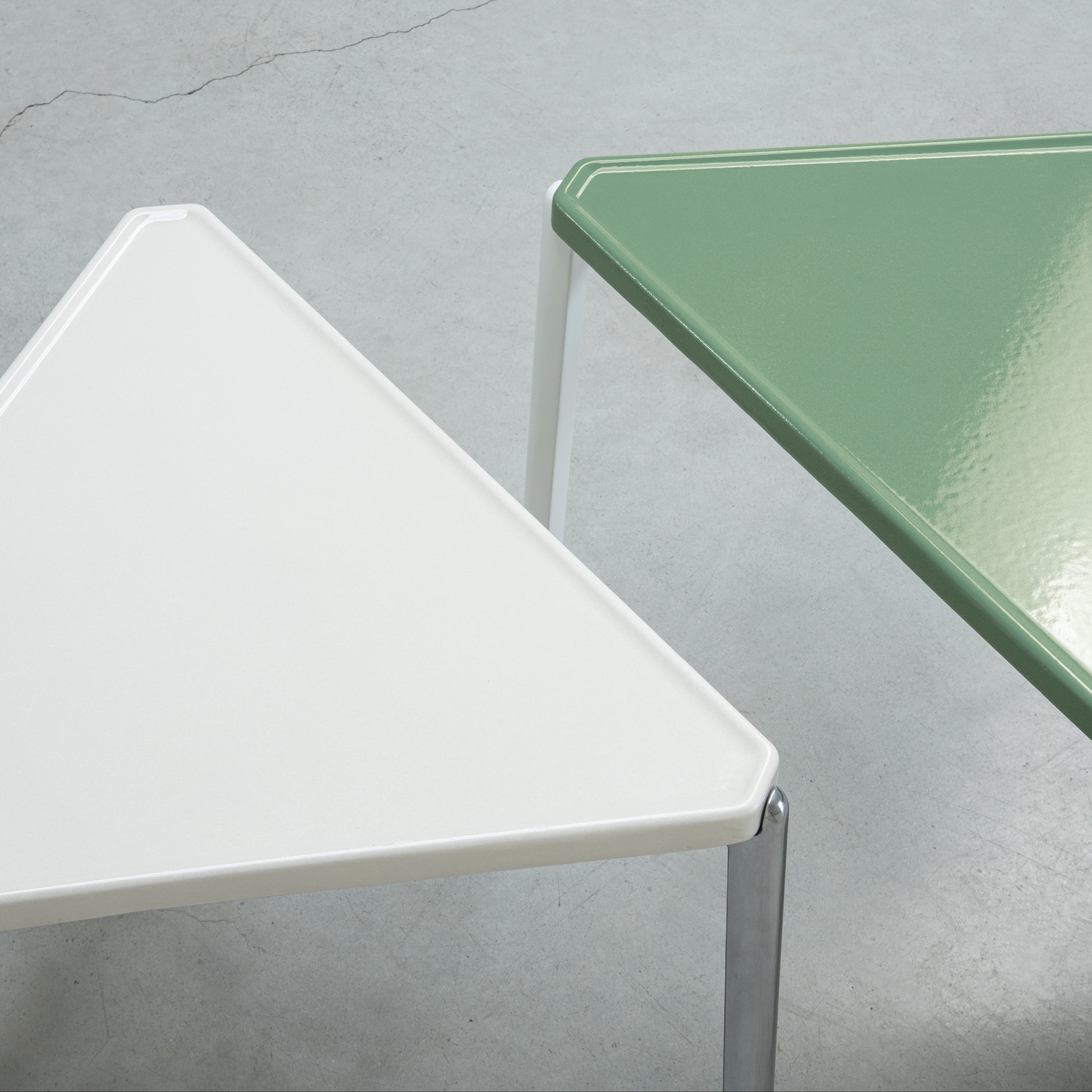 Liquid-painted concrete top, glossy finish.