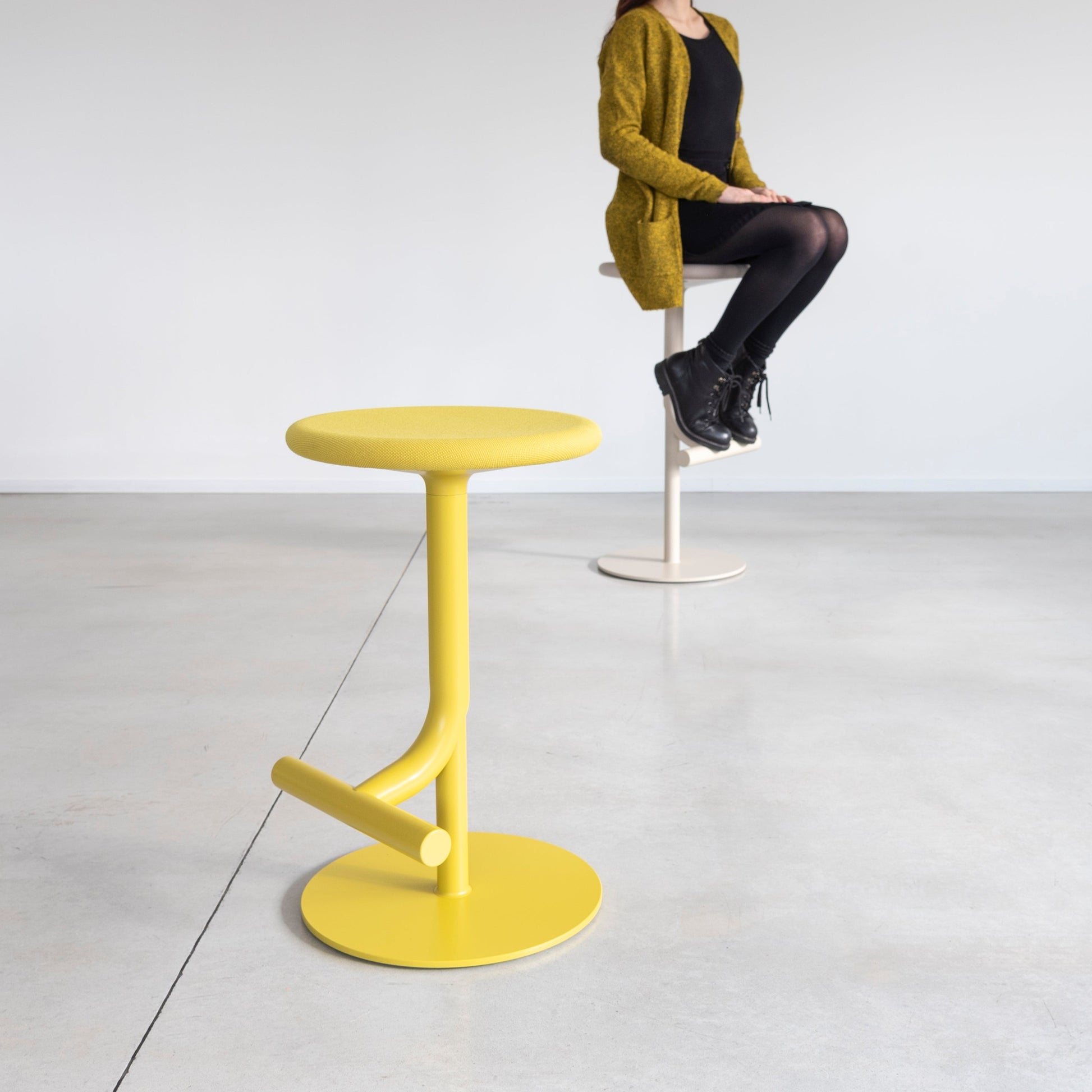 Magis Tibu Adjustable Height Stool - The design of Tibu is a seamless connection of seat and footrest. A Kvadrat or polyurethane seat lays on a frame of polyester painted steel. One colour covers the while stool, emphasizing the equivalence of the single design elements.