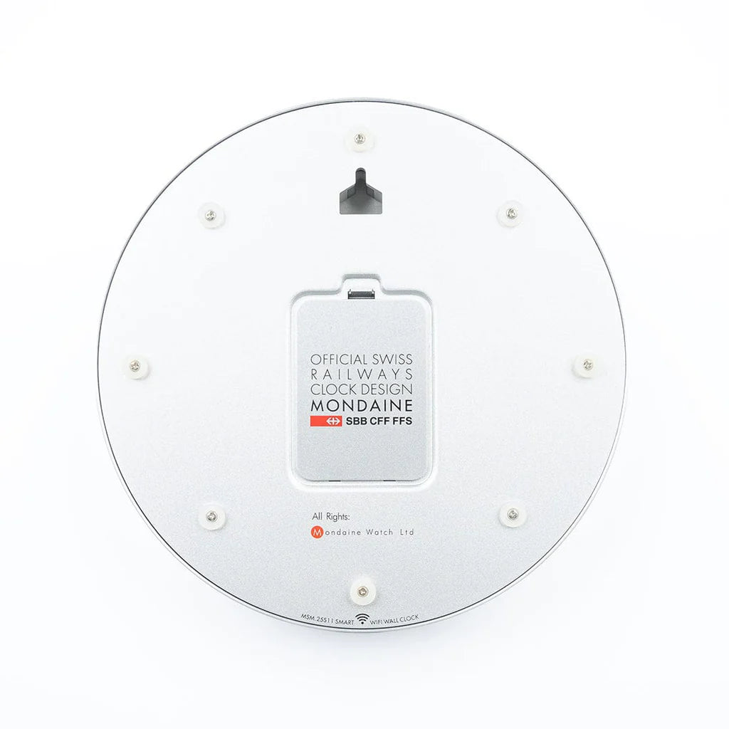 The NEW Mondaine stop2go WiFi Clock provides an easier user experience thanks to its one-time setup through WiFi. It has the functionality of the original Swiss Railways Clock – Its sweeping iconic red second hand temporarily stops for 2 seconds when it reaches 12, so that the minute hand can gracefully jump to the next minute. The clock also features the renown sweeping second hand.