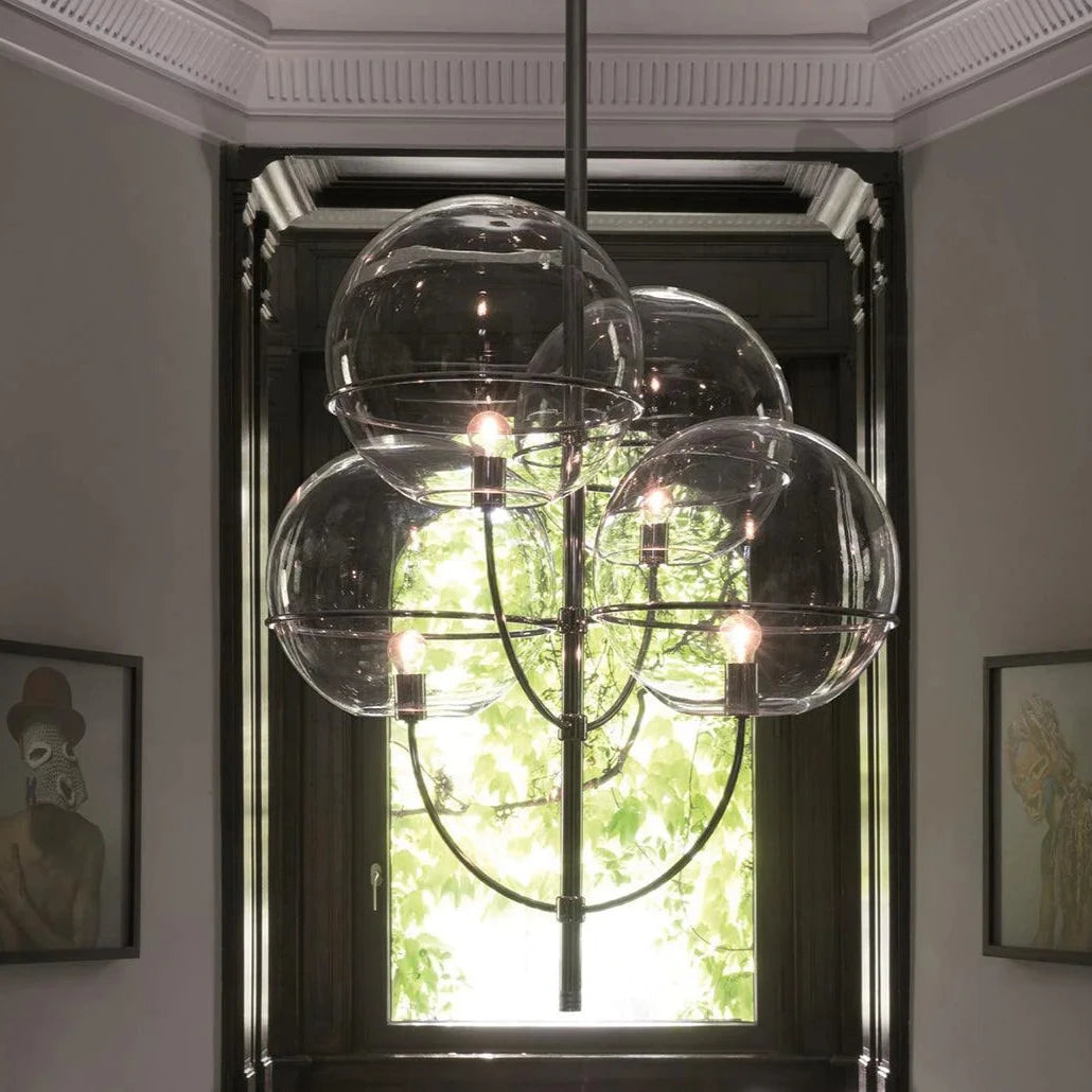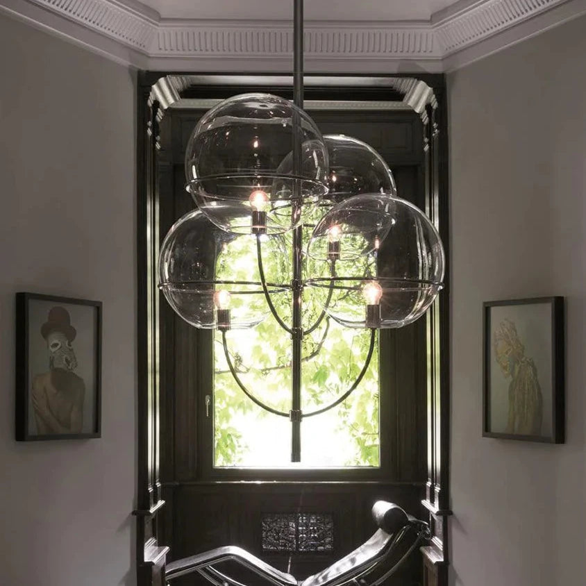 First designed in 1977, the Lyndon pendant light is inspired by nineteenth-century European street lights. The transparent glass globe and chromium-plated, the black lacquered stem is reminiscent of gas lighting, yet is wholly modern in its simplicity.