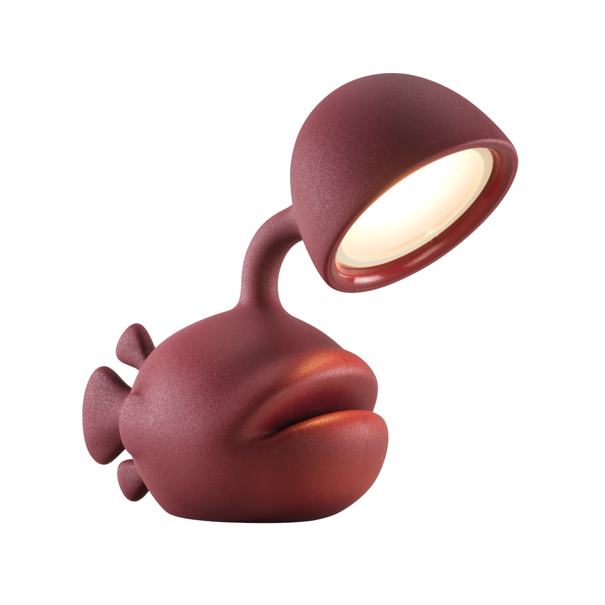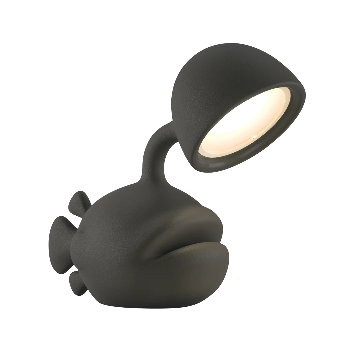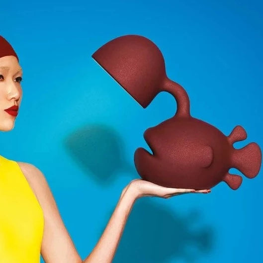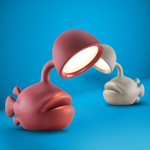 Designed by Dai Sugasawa, Abyss is a bold fish-shaped table lamp in recyclable polyethylene. Inspired by the anglerfish swimming in the deep seas with its luminous built-in rod, Abyss will dock directly to your house bringing light on your dining or bedside table.