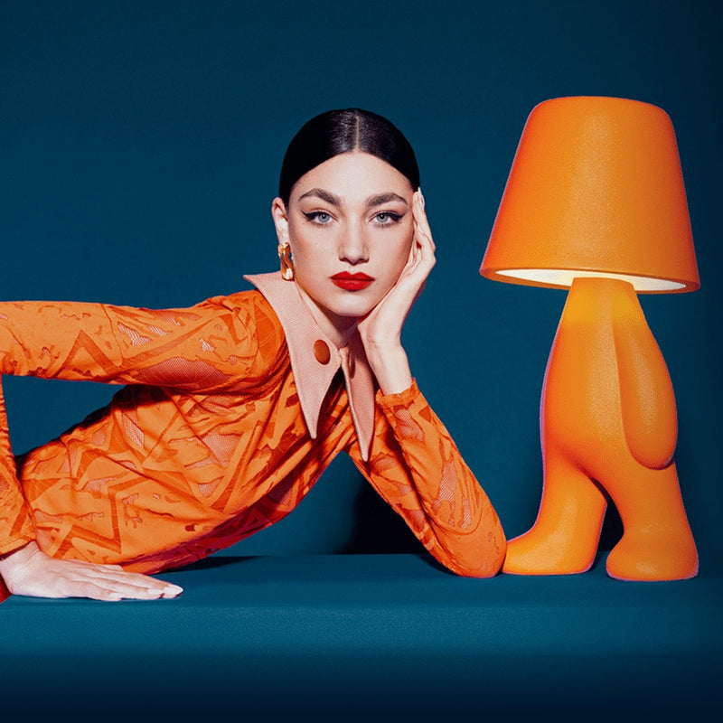 Qeeboo introduces the latest addition to the Golden and Sweet brothers family: the Bigger Brother. This new member expands the family maintaining the same endearing posture of the renowned Tom lamp. Crafted to illuminate your space, the Bigger Brother is a cable lamp equipped with an integrated switch that allows you to light up his head. Available in a range of different recycled mixed blends, he can be your bedside companion, a reading light, or a decorative accent.