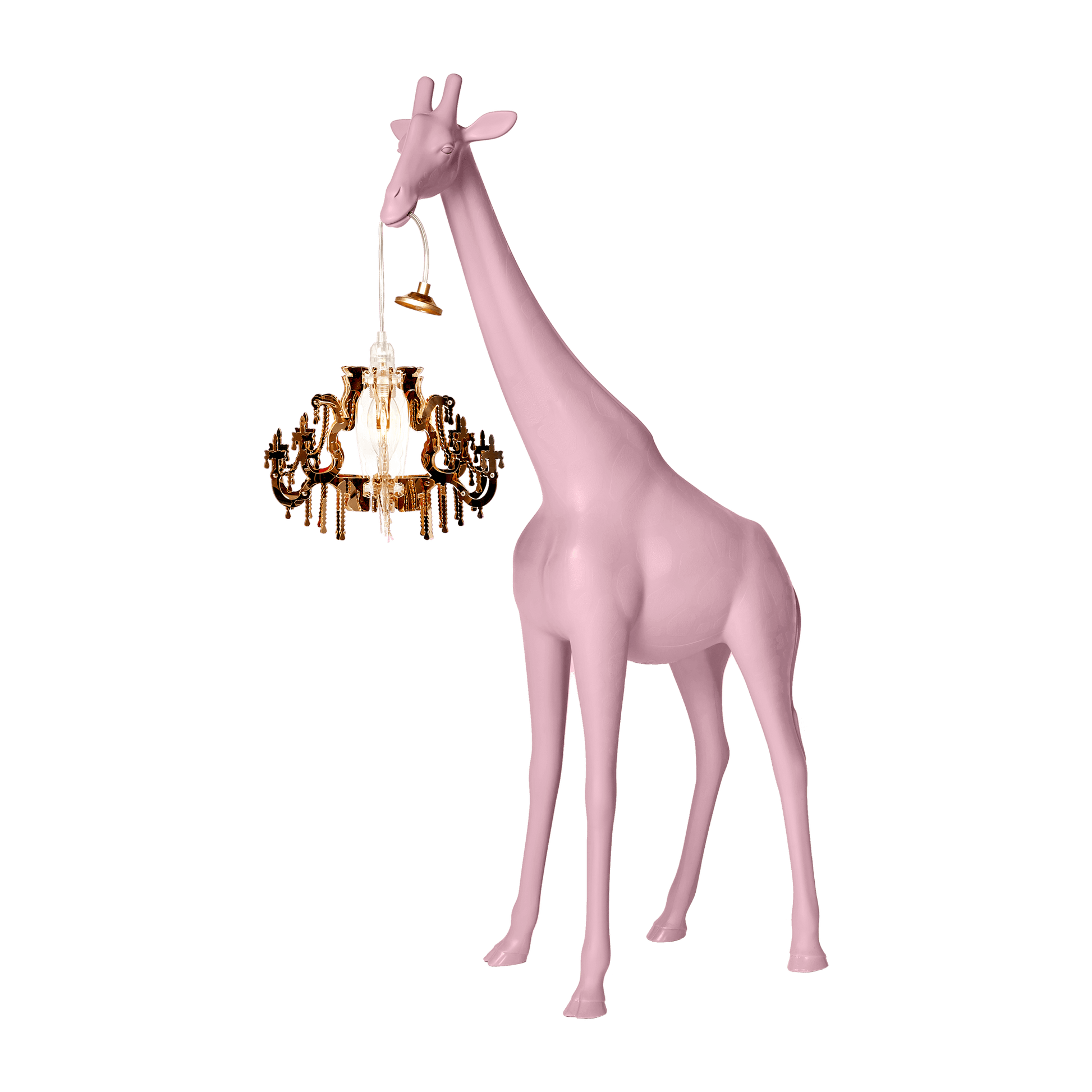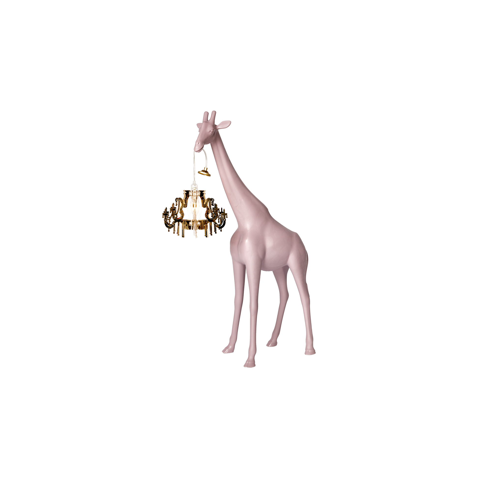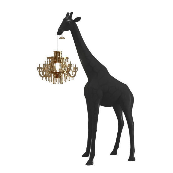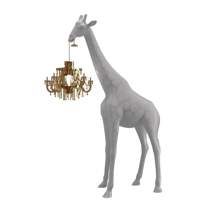 "Giraffe in love" is the new product born from the collaboration between artist/designer Marcantonio and Qeeboo. It is a dreamy giraffe holding a classic Marie-Therese style chandelier. “Giraffe in love” represents irony and lightness: the giraffe is in love but she does not know it yet because her heart is far from her head and she lives love light-heartedly.