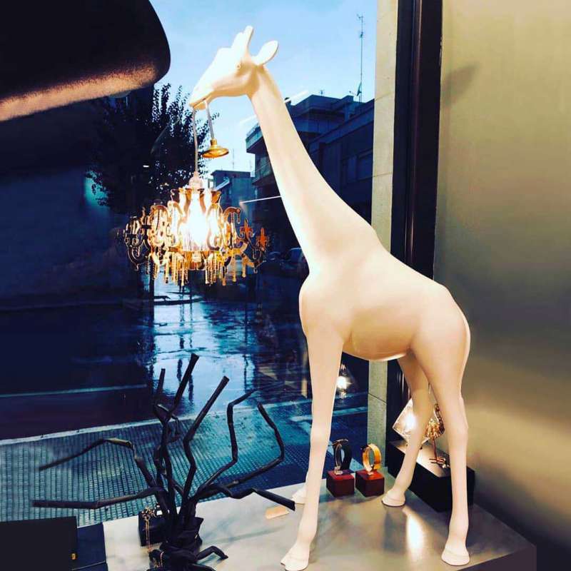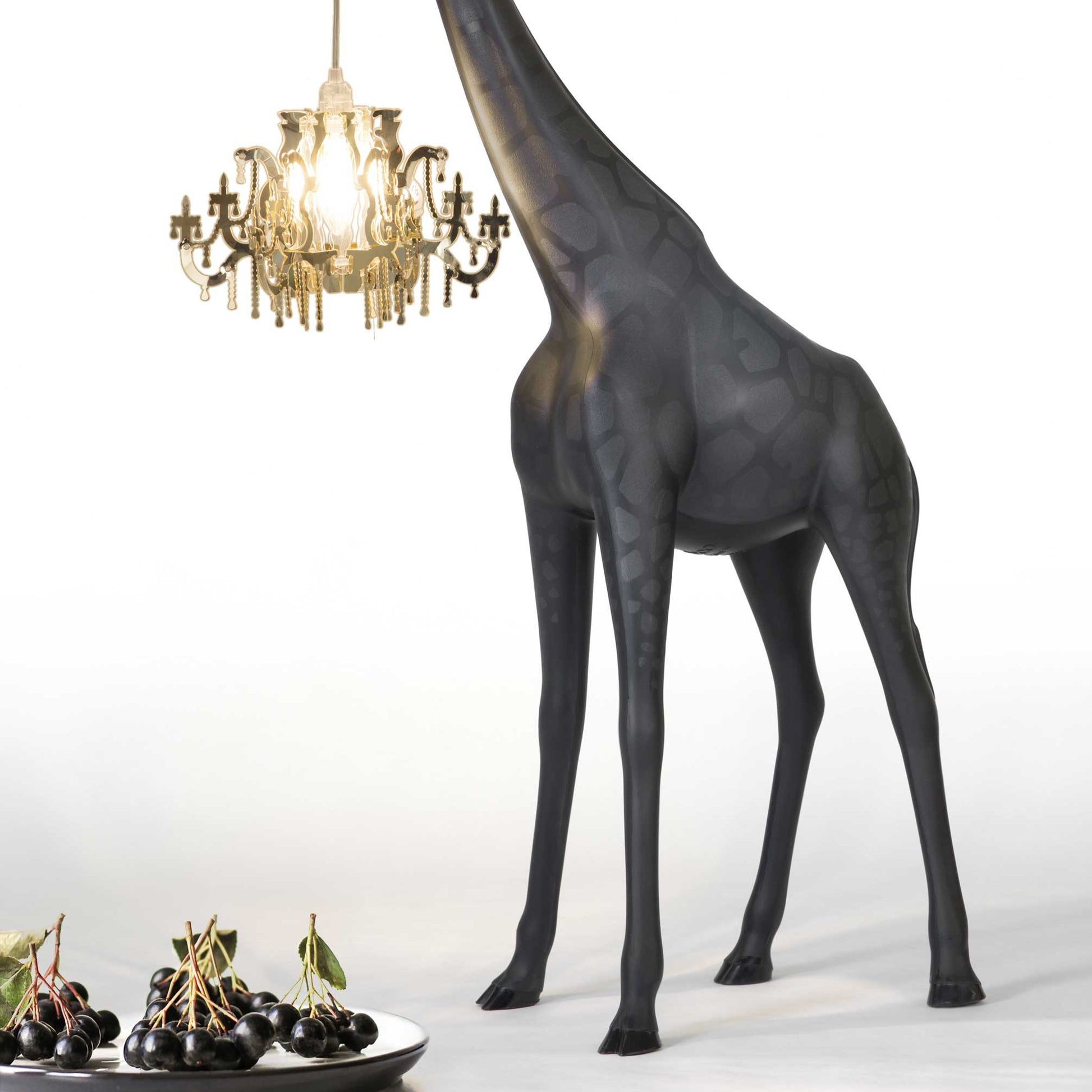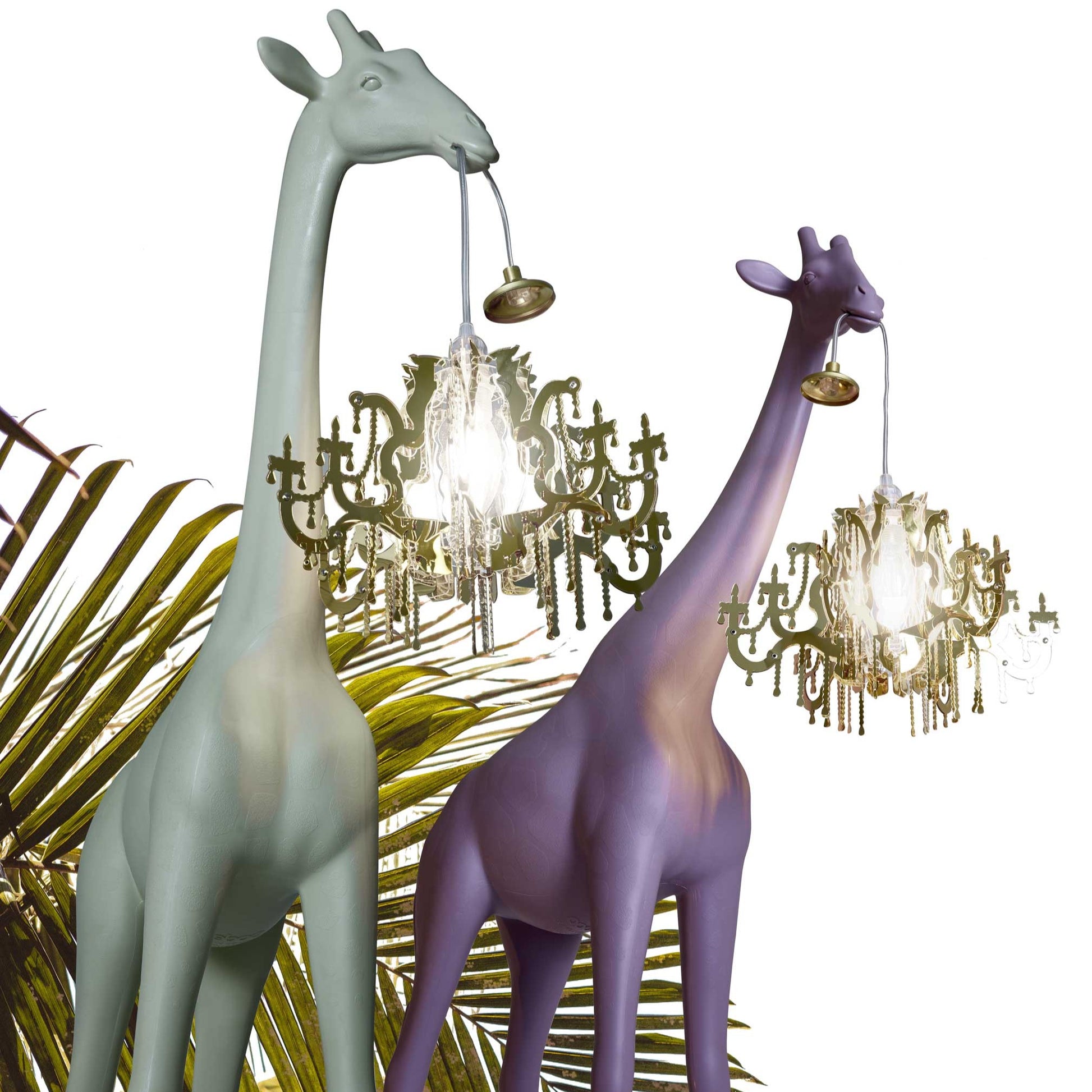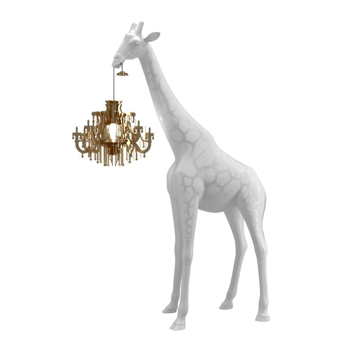 "Giraffe in love" is the new product born from the collaboration between artist/designer Marcantonio and Qeeboo. It is a dreamy giraffe holding a classic Marie-Therese style chandelier. “Giraffe in love” represents irony and lightness: the giraffe is in love but she does not know it yet because her heart is far from her head and she lives love light-heartedly.