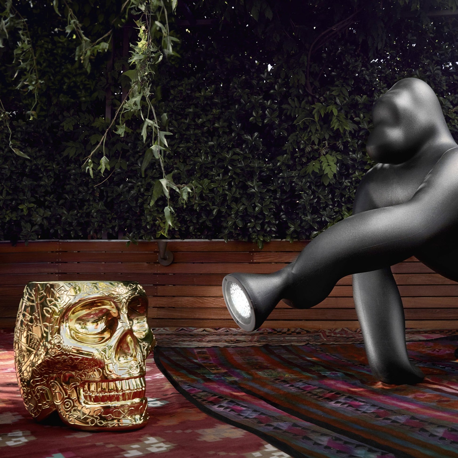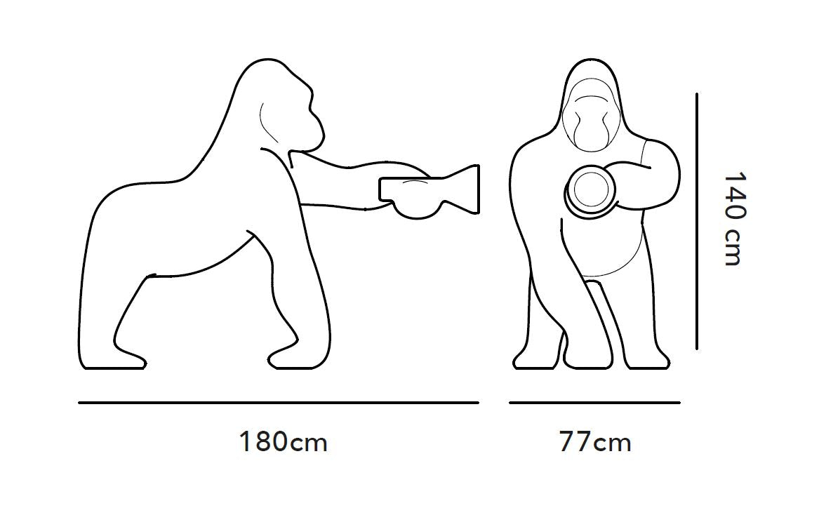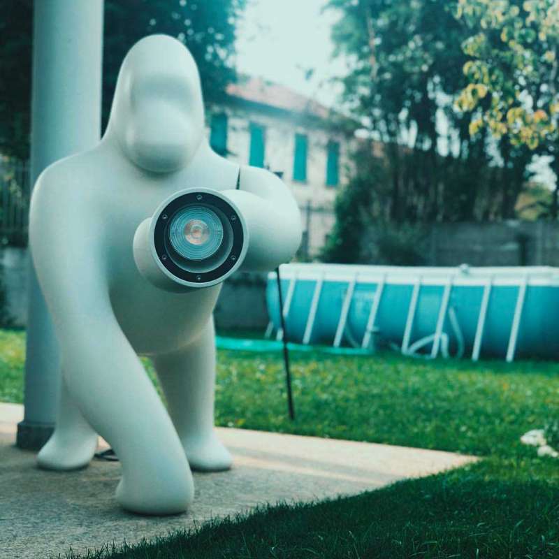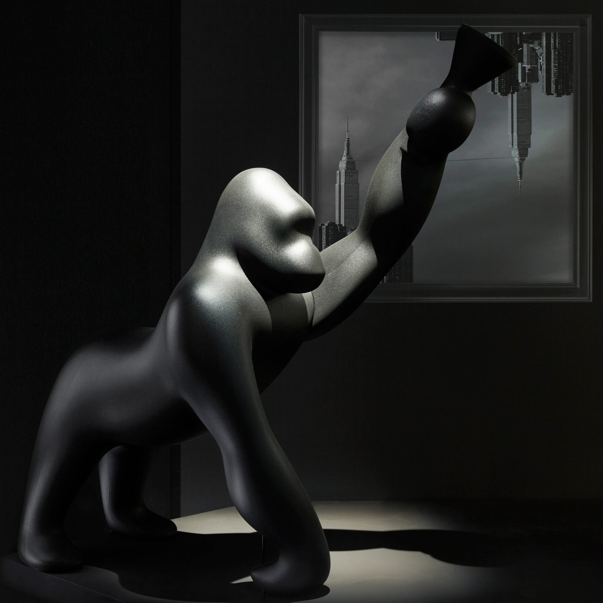 He is physically out of size to be a toy and a lamp, as well as out of size for being a gorilla. Kong becomes a unique and extraordinary object left in liberty in unlimited space and environments. Especially he isn’t scary anymore thanks to the imaginative look created by the designer.