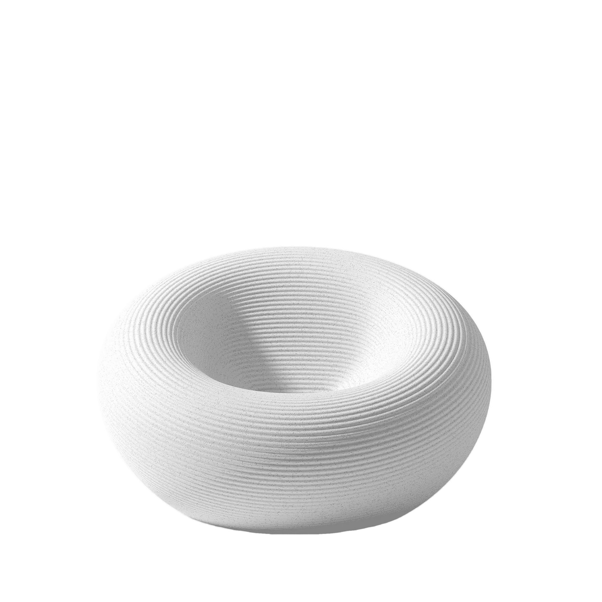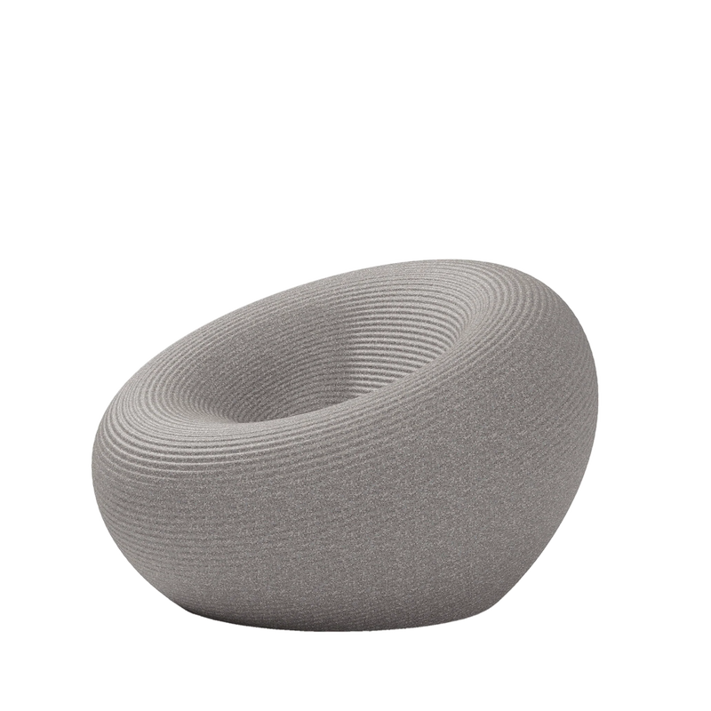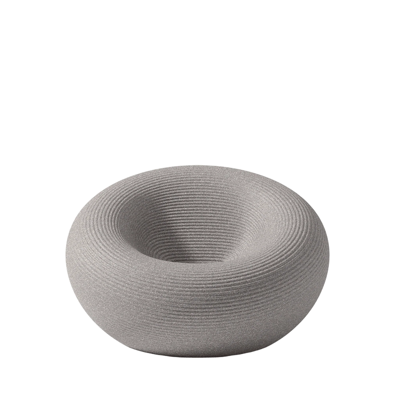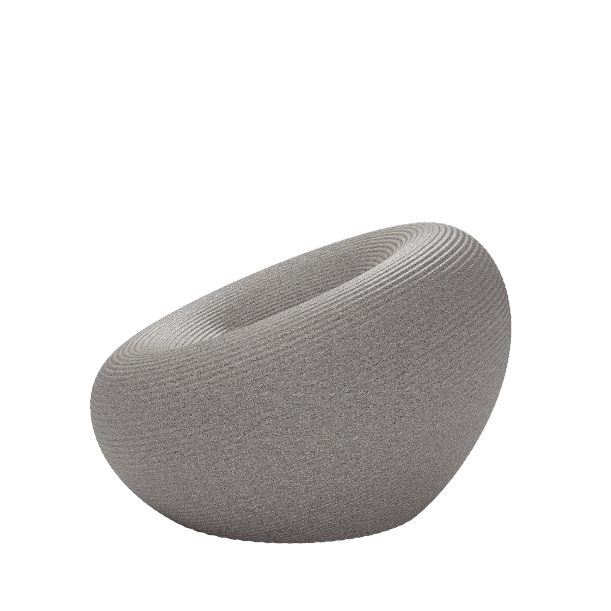 The Nami Armchair Mix is obtained by the rotation of a section on the diagonal axis, it has a perfectly circular shape where the moldings that characterize its surface unravel from the center to its edges with a sequence of concentric rings. In the center of the armchair there is the channel for water reflux. Available in six colours, three of these have a uniform colour, the other three are obtained from recycling and mixing materials with 2-3 different color tones.