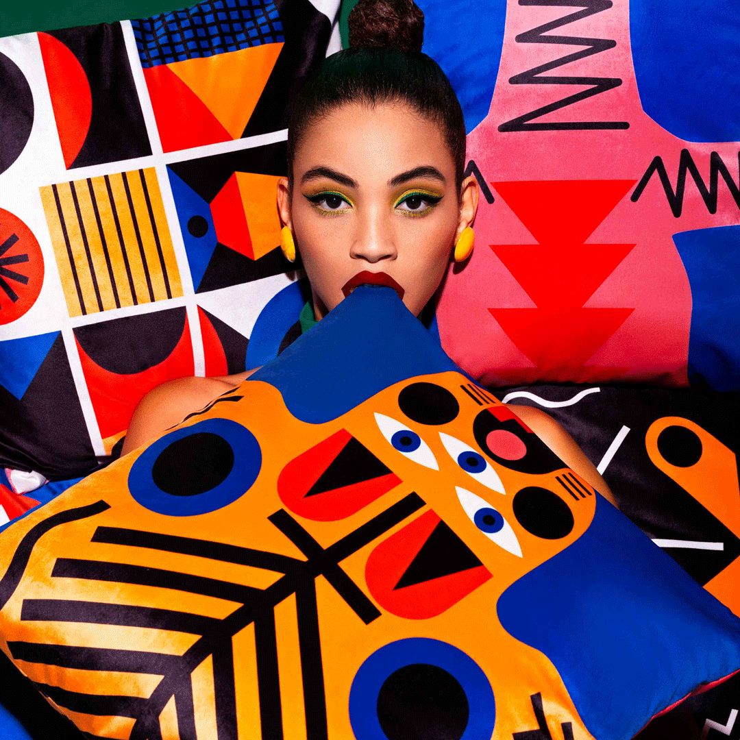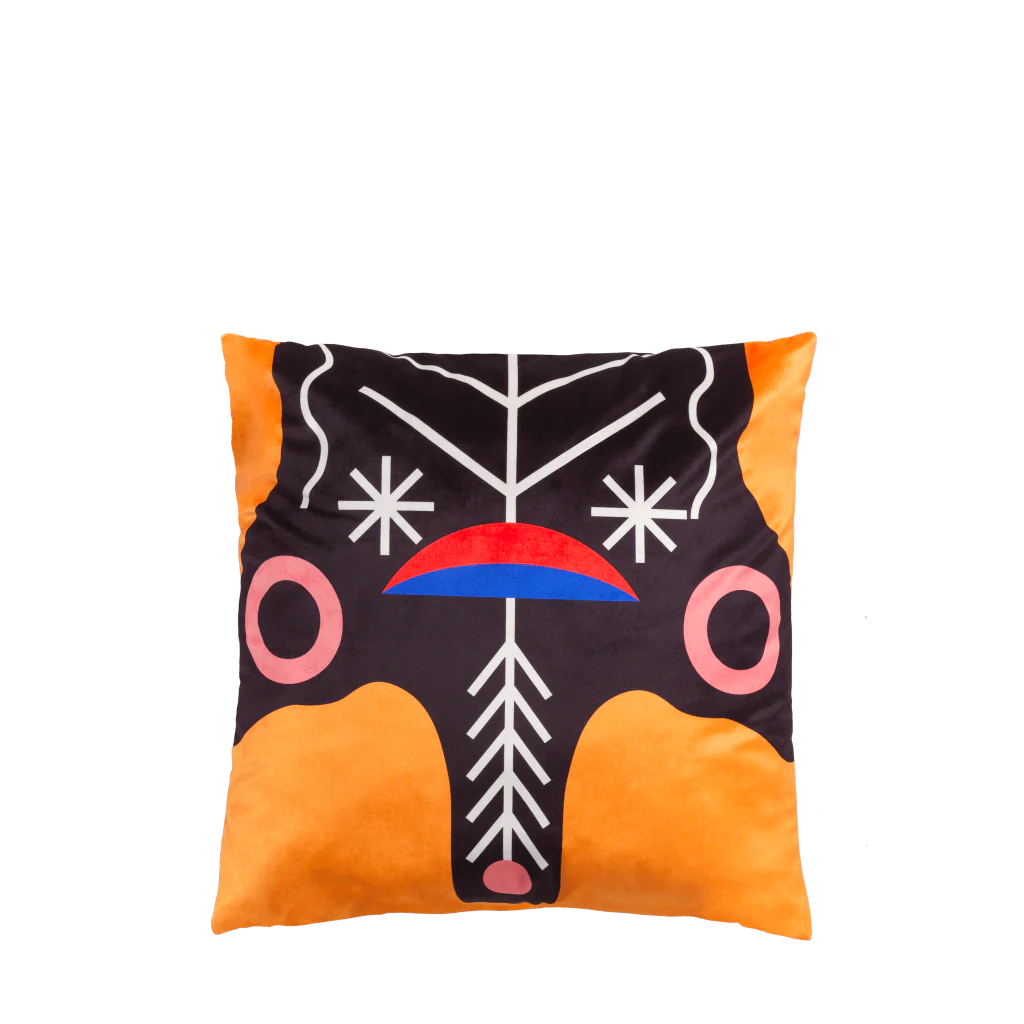 Discover Cushion Oggian Kinotto. The recurring monsters, creatures and geometrical shapes present in Marco Oggian’s graphics can be found also in these new 45x45 cushions. Eye-catching and entertaining they will add a splash of colour to your living rooms or bedrooms.