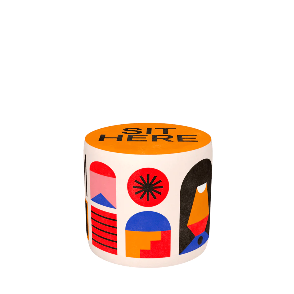 These pouf, designed by Marco Oggian are characterized by playful patterns all around. On top of them you will a find a “SIT HERE” sign encouraging people to try them and enjoy their comfort.