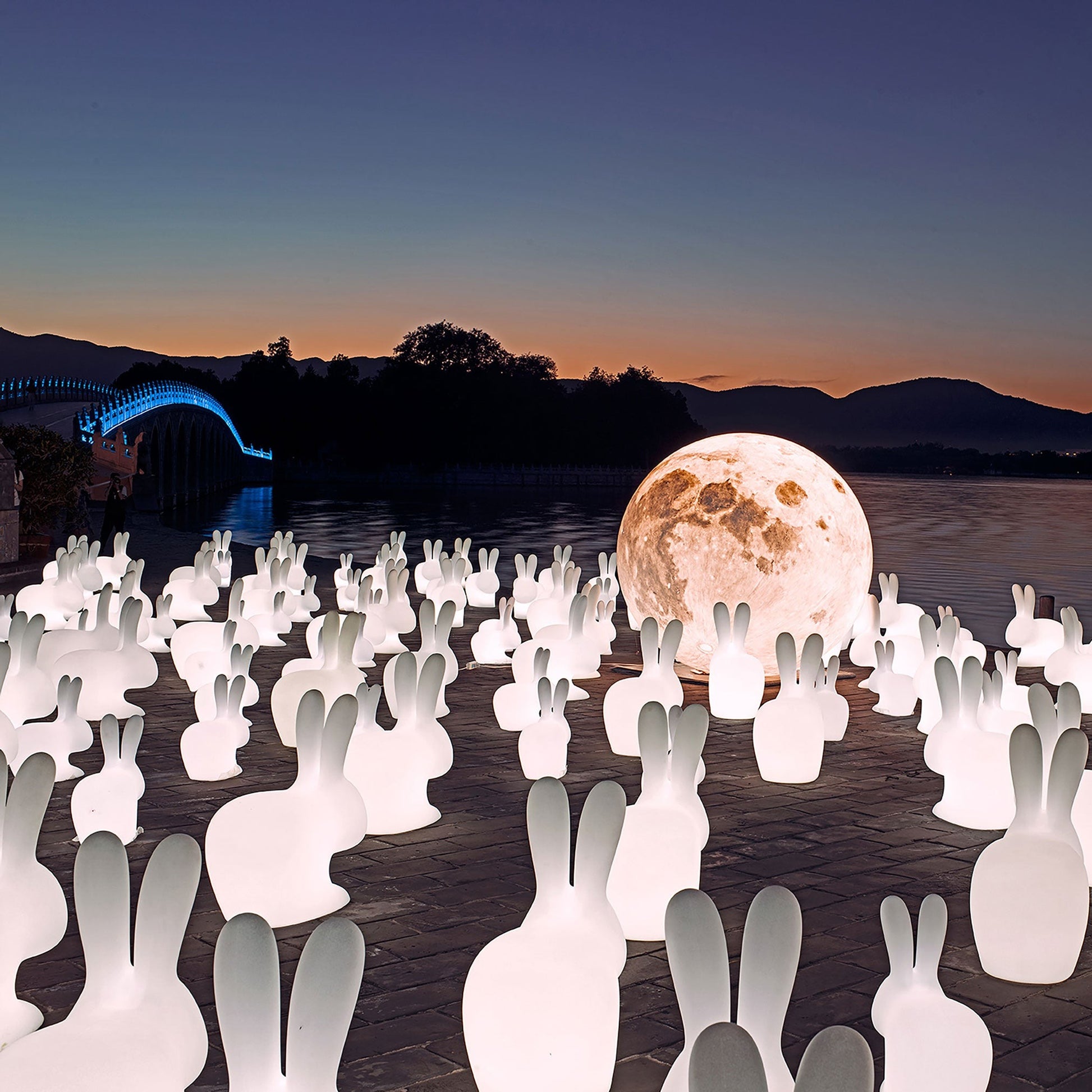 The rabbit is a gentle animal, lovable and tender. In Western and Eastern culture it symbolizes love and fertility, it is a sweet and auspicious object that brings good fortune and