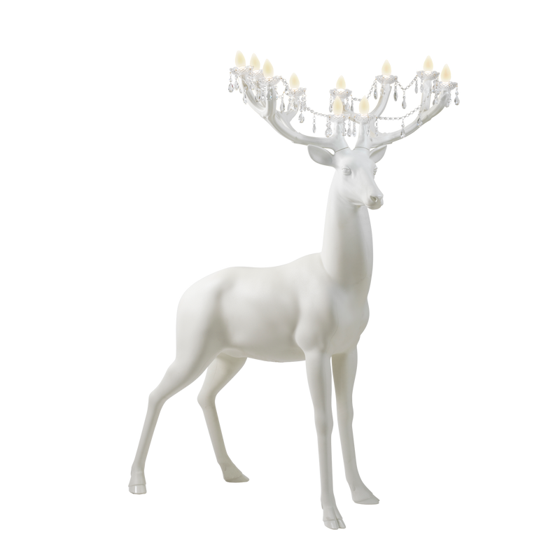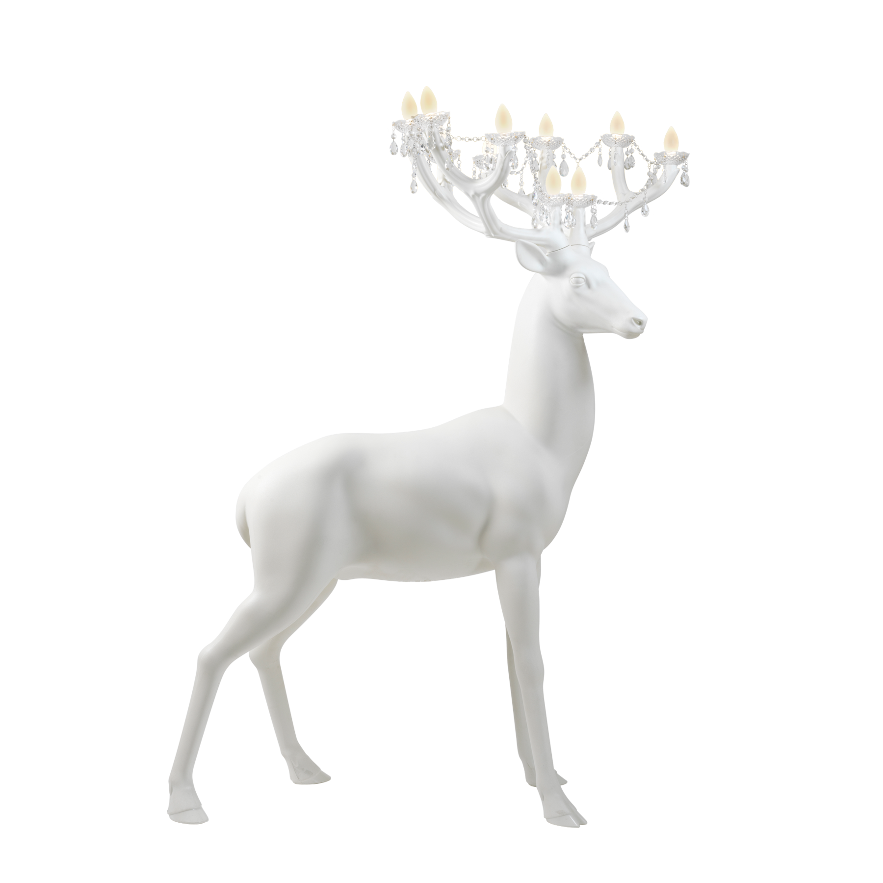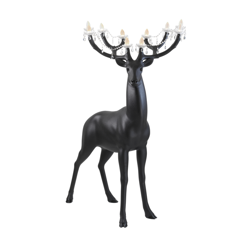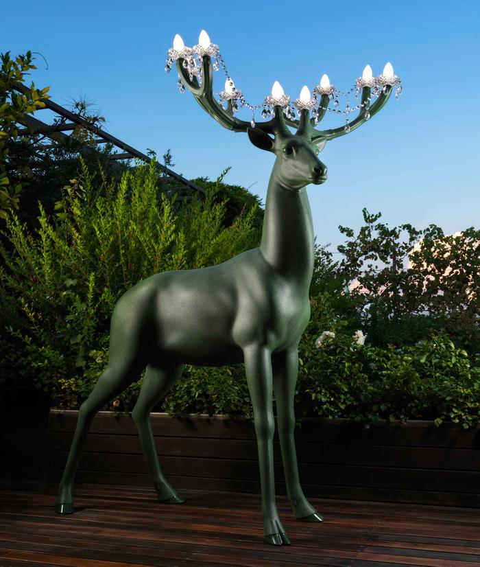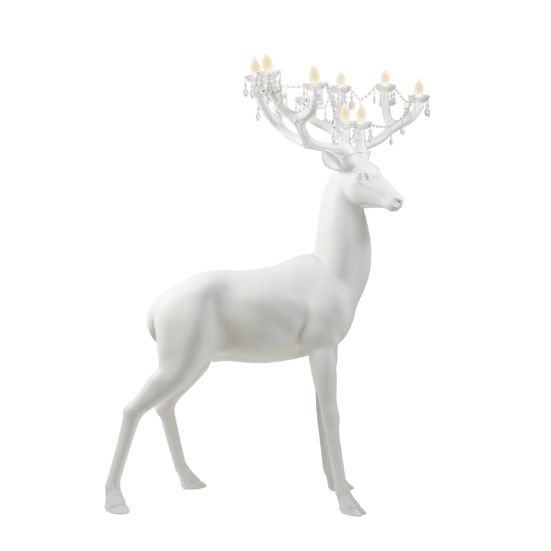 Sherwood is an impressive 2-meter-high deer whose antlers become chandeliers decorated with crystals and pendants.