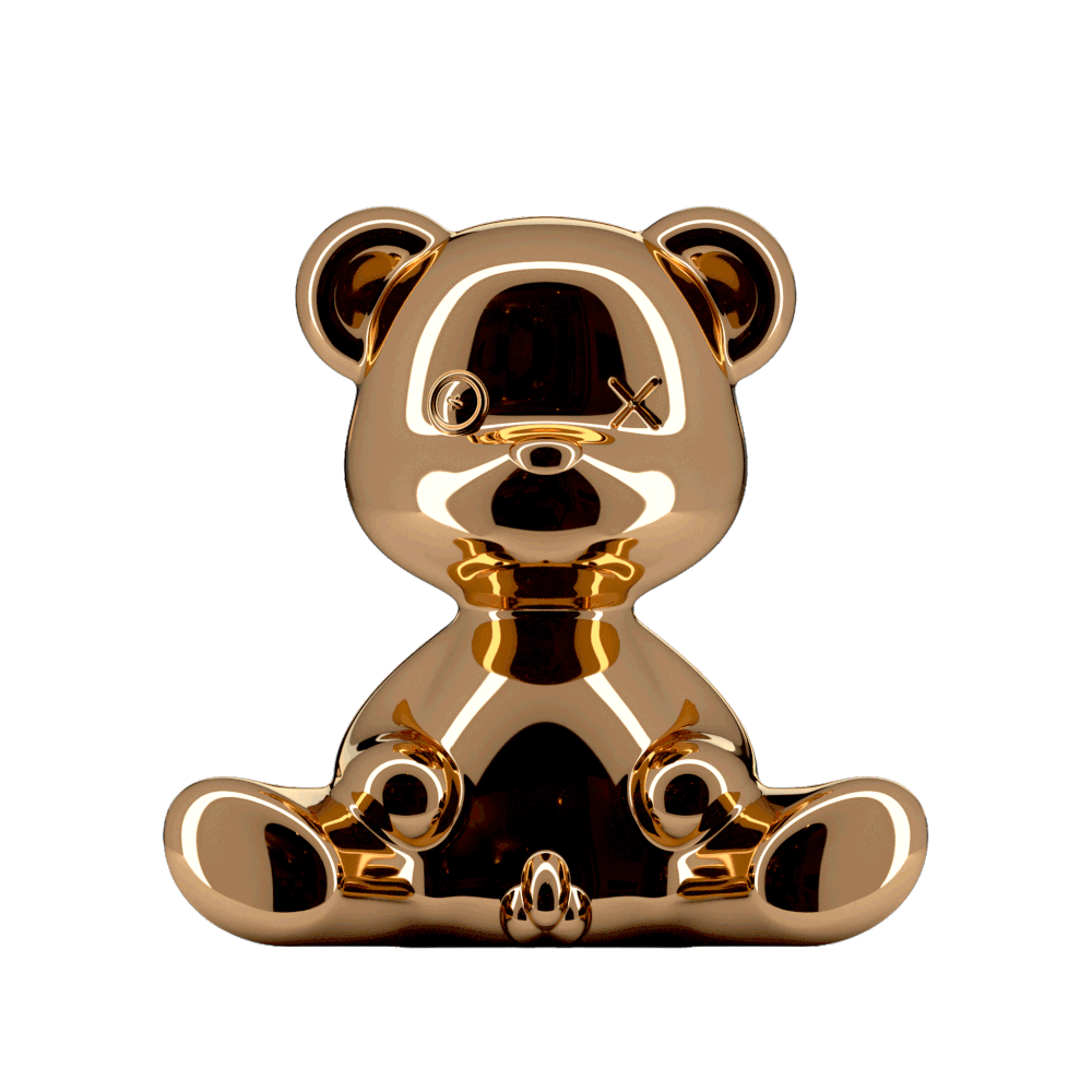 Teddy Boy winks at the old toy with an irreverent attitude that mixes teddy bear’s traits with “almost human” features. The luminous bear thus expands the large Qeeboo family made of objects out of the ordinary which play with colours and different finishes.