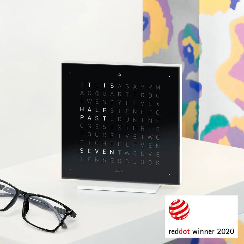 The bright colors of the polished acrylic glass frontcovers are applied in an elaborate multiple screen printing process.They match perfectly with the white corpus of the QLOCKTWO EARTH 13.5 PURE and let it shine in a completely new light. Available in 6 beautiful colors and more than 20 different languages.
