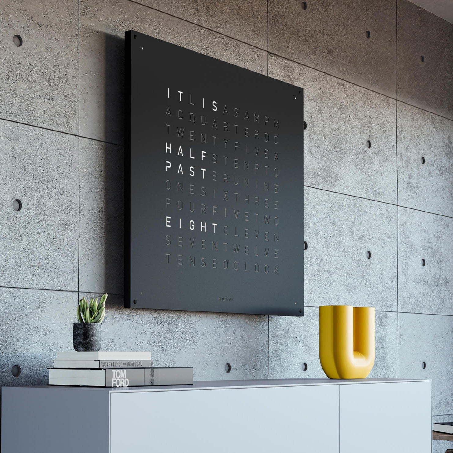 1. Word-Based Time Display: The hallmark feature of Qlocktwo clocks is their word-based time display. Instead of traditional clock hands or digital numbers, the clock uses a grid of letters to spell out the time in words. For example, "It is half past ten" or "It is quarter to three." This creative approach adds a touch of whimsy and uniqueness to timekeeping.