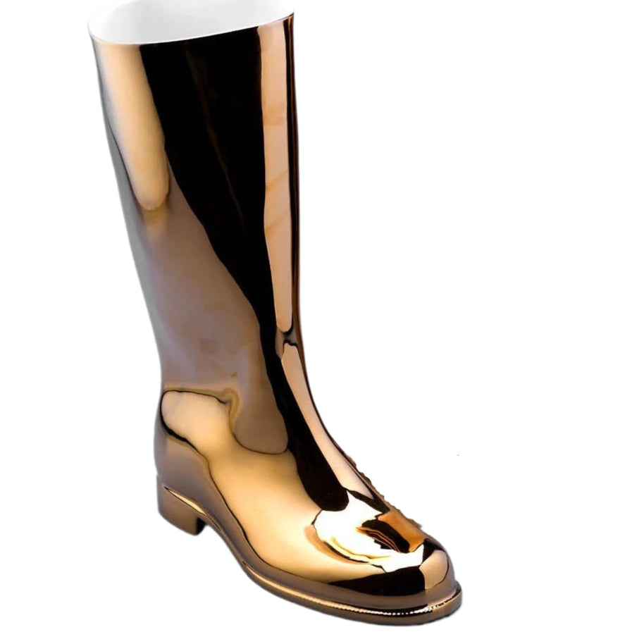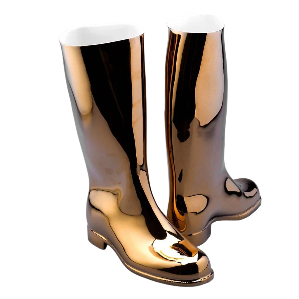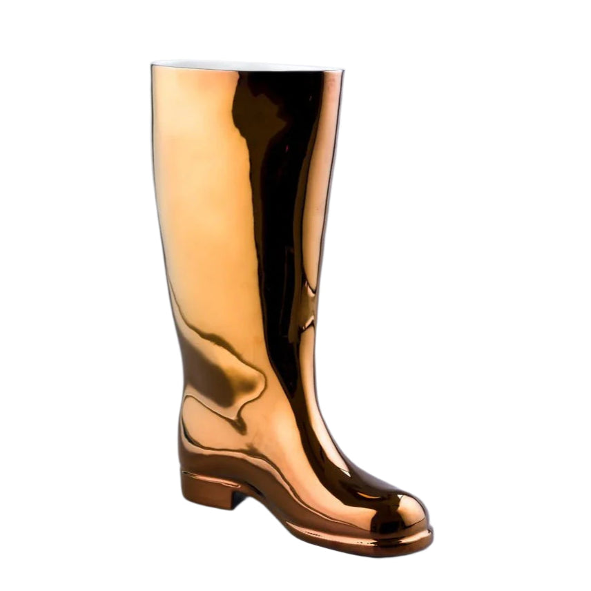 Rubber boot shaped vase, originally white, later expanded in many colour variations, starting with onion decoration and other, mainly plated variations. Part of a thesis with one of the most famous Maxima products. The author's fascination with folkiness, practical aesthetics and trivial charge is already evident here, as well as his desire to reverse a seemingly fatal fate and elevate an ordinary product through noble materials and a change of function.