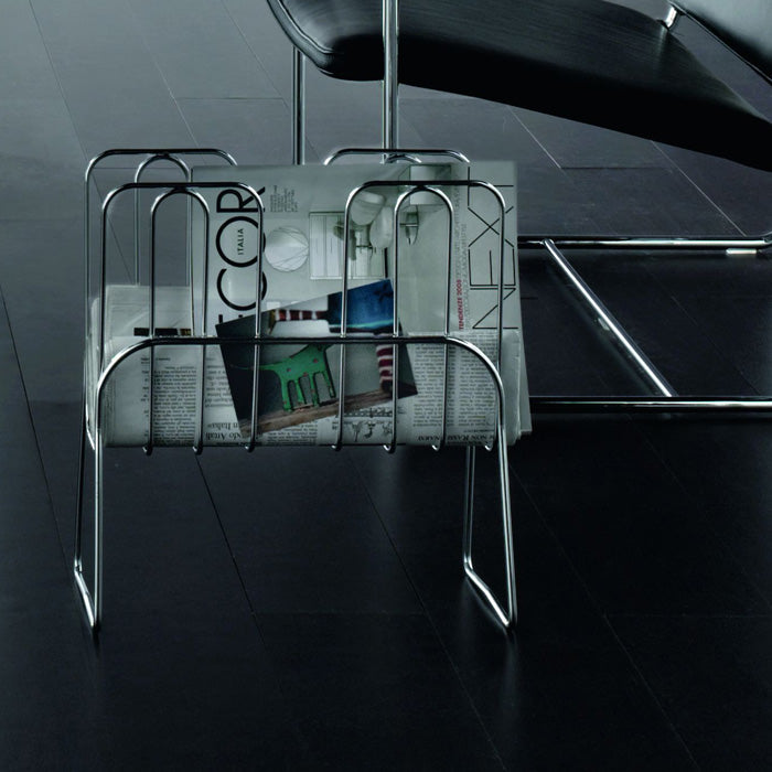 Elegant chromium plated steel structure, roomy but not bulky, the ideal solution for elegantly storing magazines and newspapers.