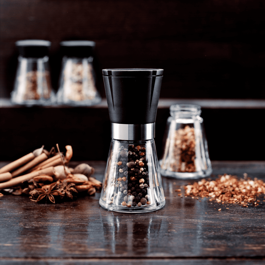 When you store your spices whole and only grind them when needed, you ensure that their taste and aroma are retained for longer. The mill can be set to grind finely or coarsely and works on the same principle as a pestle pounding the taste out of the spices.
