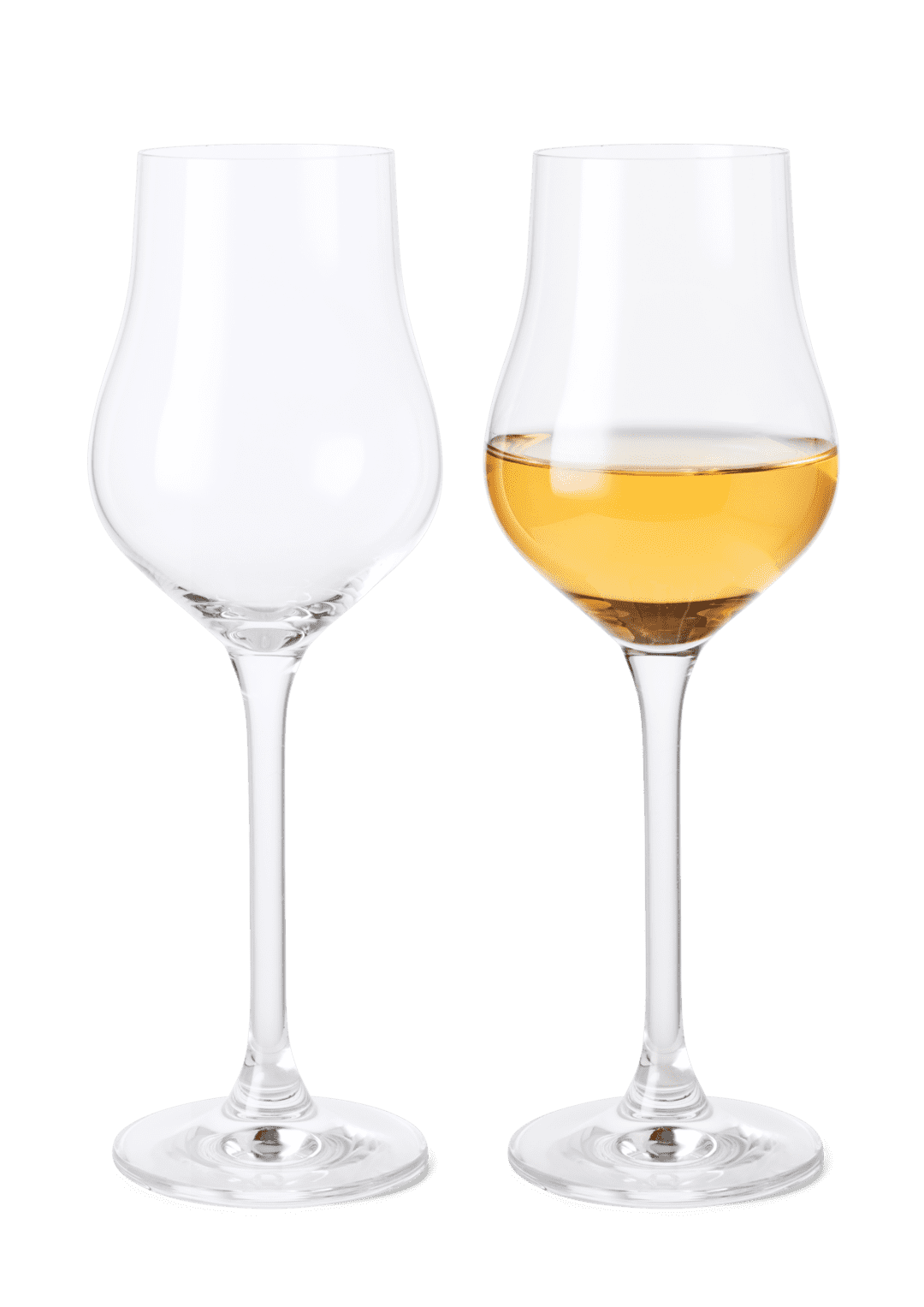 Serve the sharp spirit in Premium spirit glasses from Rosendahl. The round shape of the glass makes the spirit glass easy to balance by hand when the dark rum, full-bodied cognac or smoked whiskey is to be quietly warmed up.