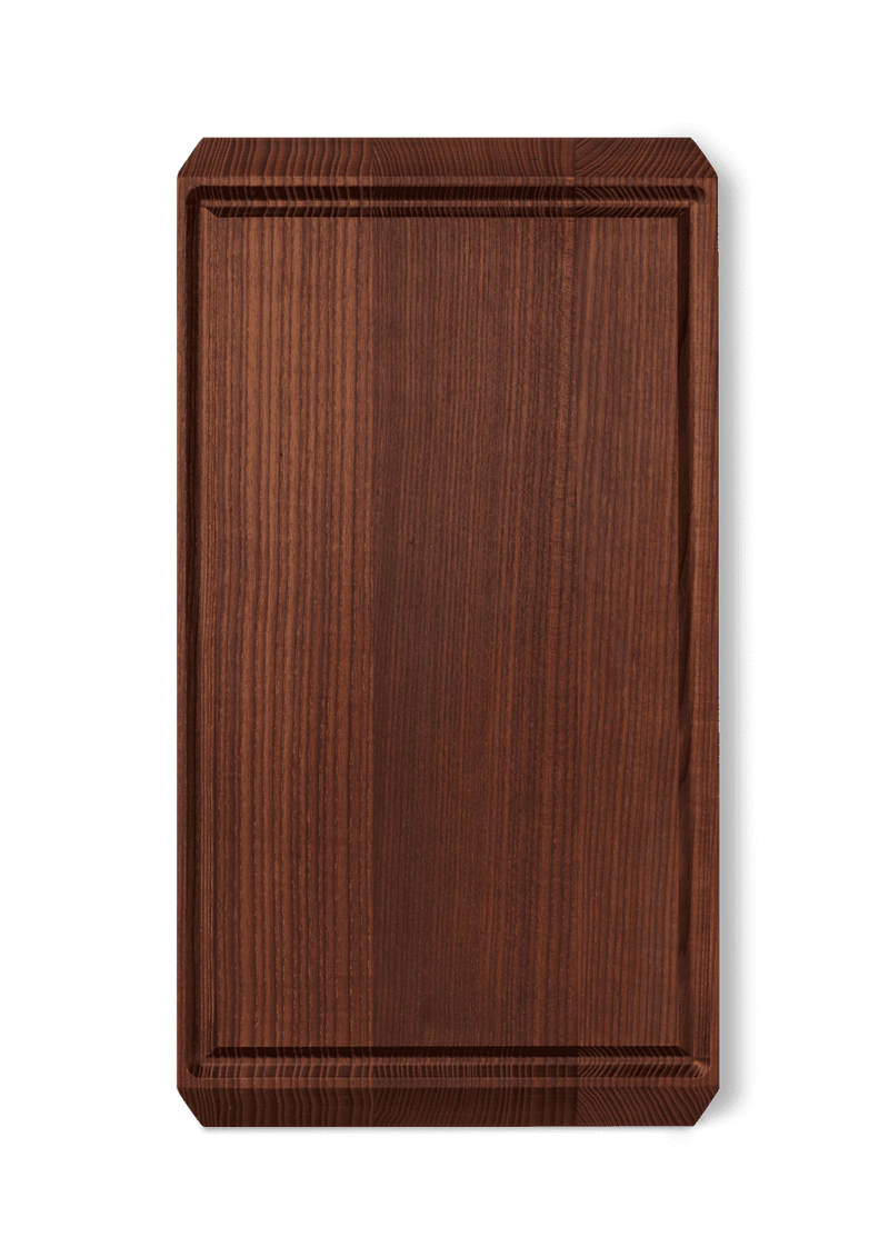 The chopping board is designed in Thermo Ash. The heat treatment of the wood produces the dark color, which can vary in tone and darkness. Due to the heat treatment the wood can have a ‘scent of sauna’, – it will, however, decrease over time.