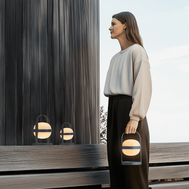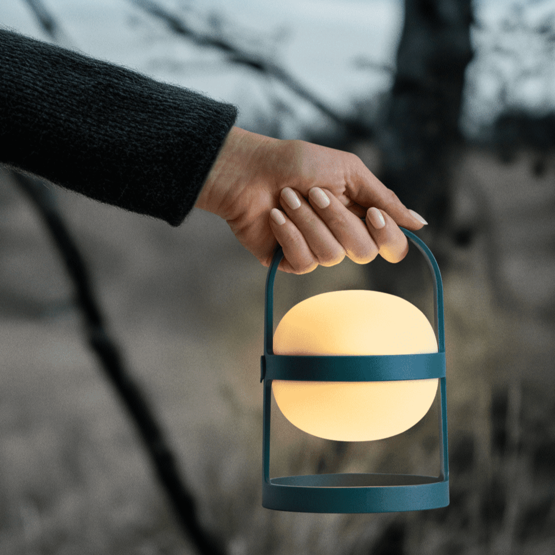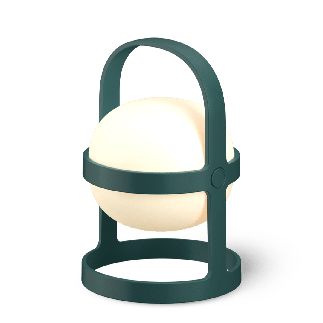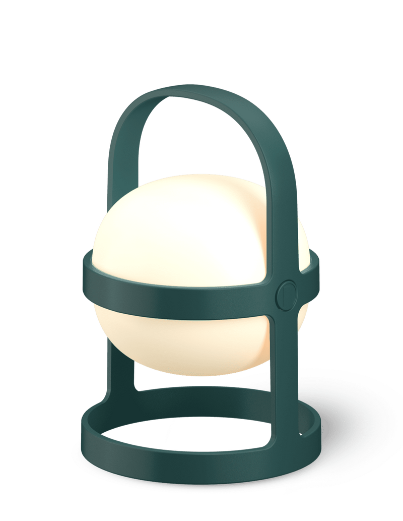 Light and modern in expression, yet still true to its origins. With the Rosendahl Soft Spot Solar Circular lantern in recycled GRS certified materials with a plastic frame in a deep forest green colour, you get a stylish and visionary addition to the popular Soft Spot Solar lantern. The Soft Spot Solar lantern is built up of repeated circles that enclose, protect, and carry the ‘floating light sphere’ – and at the same time form the base and handle in one. In Rosendahl Soft Spot Solar Circular, both the combined handle/base and the light sphere are produced in recycled GRS certified materials, which, like the rest of the lantern, are designed for disassembly. The lantern has a built-in solar panel, meaning that the sun’s rays supply the rechargeable battery with solar energy.