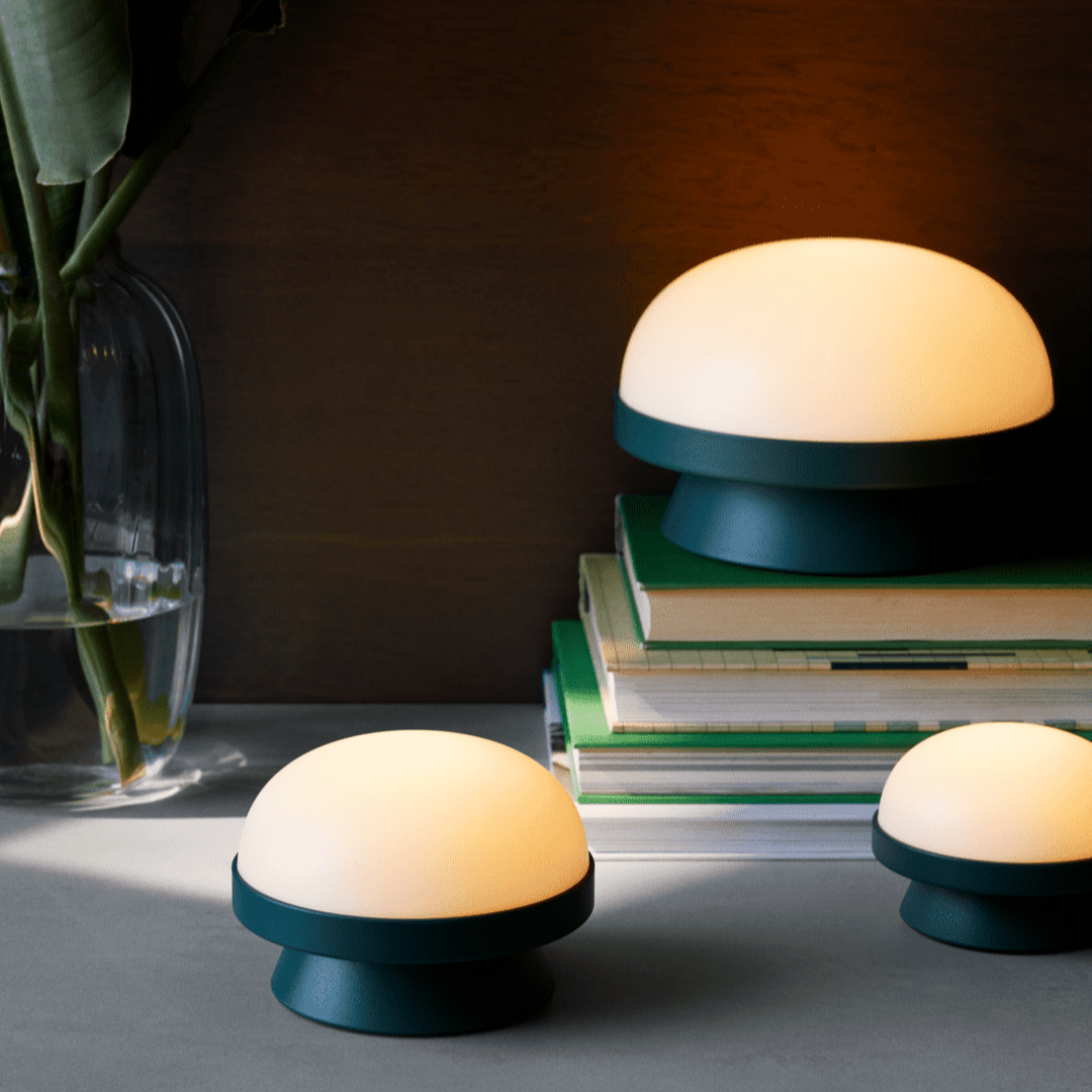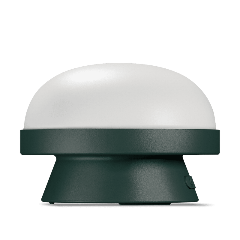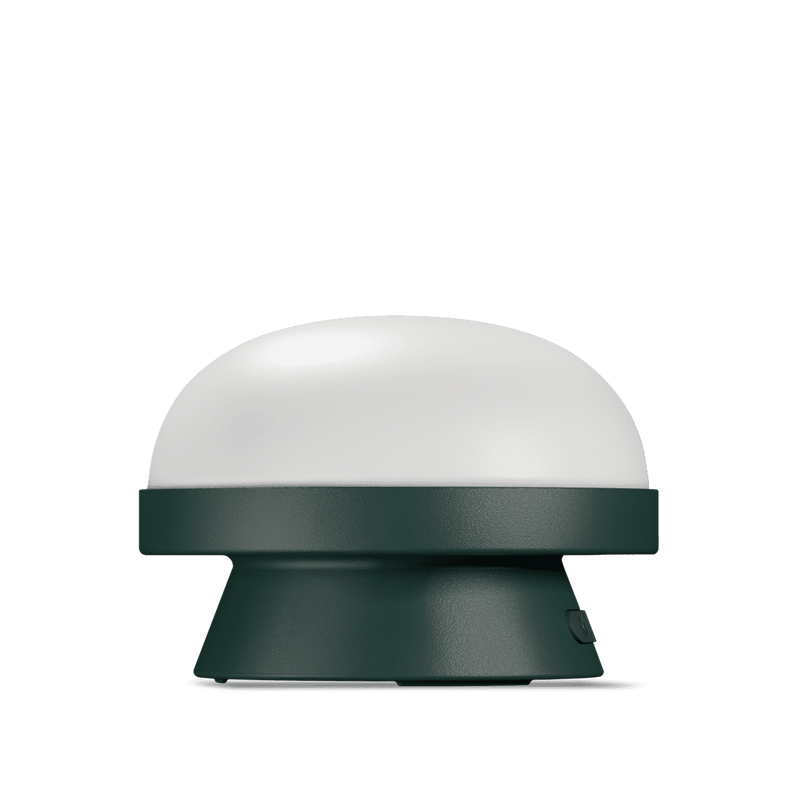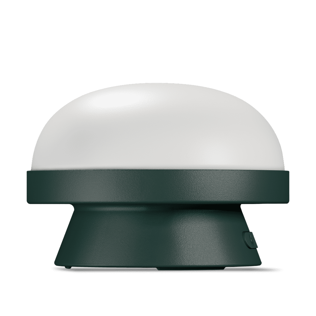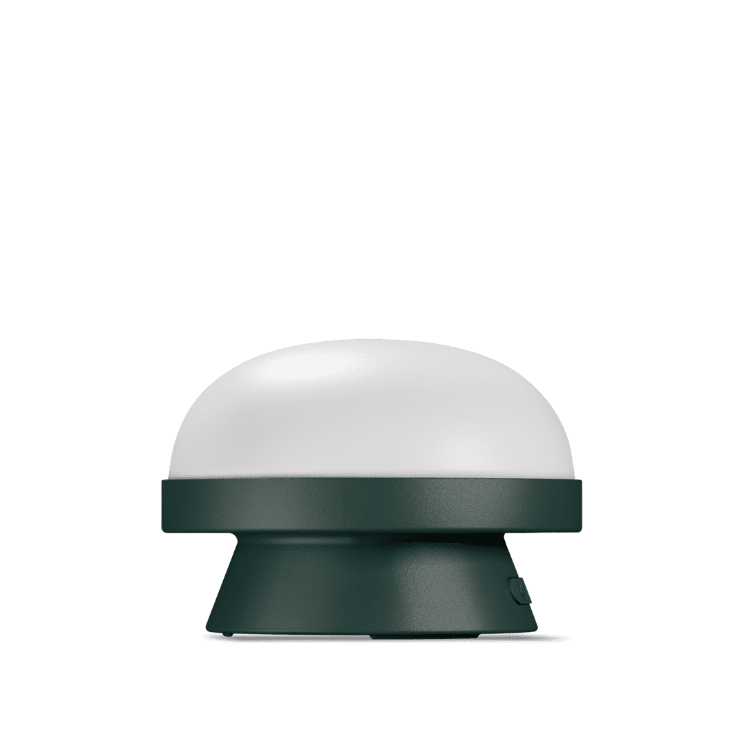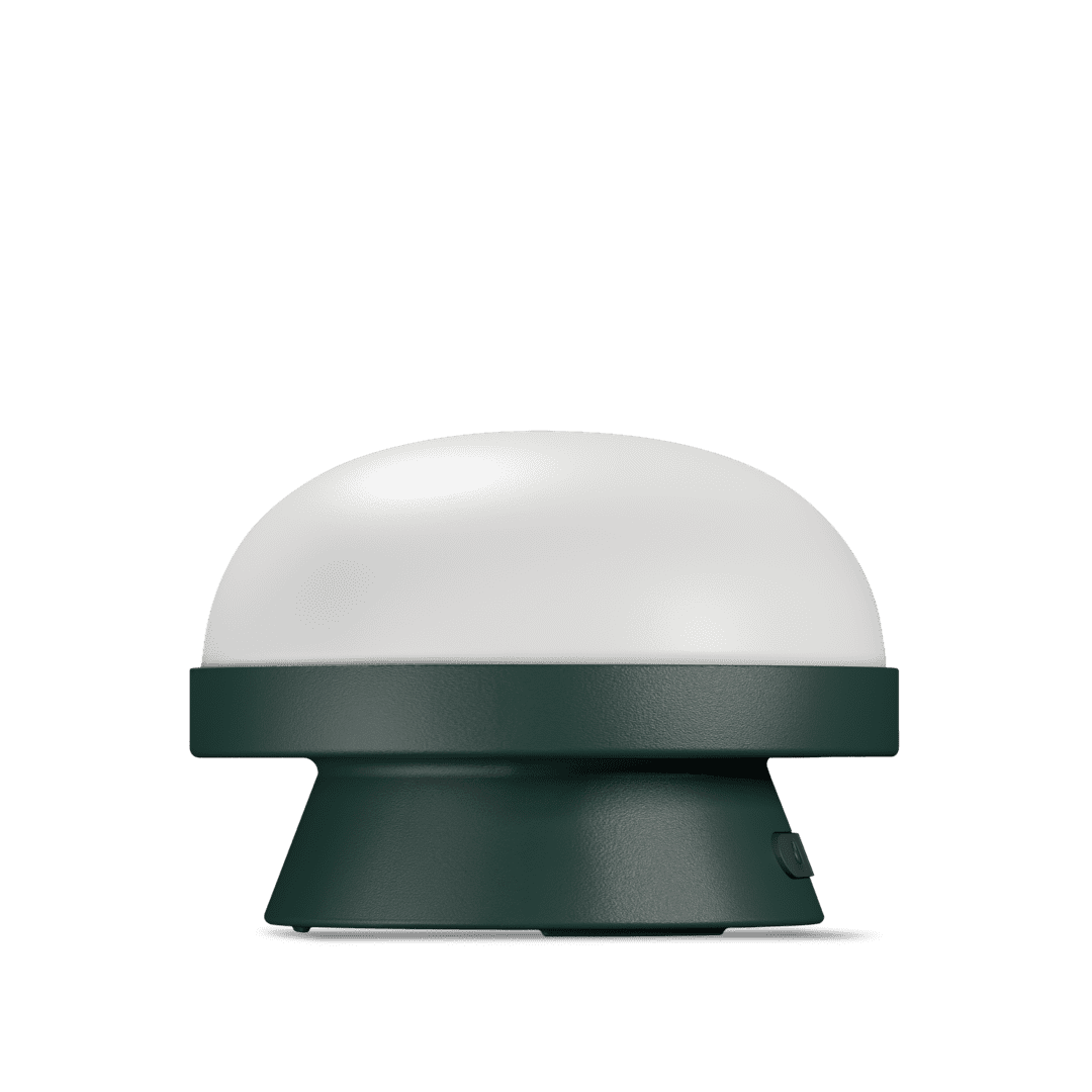 Indoors and outdoors. Summer and winter. With the Rosendahl Soft Spot Solar Dots lamps in recycled GRS certified materials in a beautiful forest green colour that exudes nature, you get a stylish and visionary addition to the popular Soft Spot series created by Maria Berntsen in a new and atmospheric form and colour. Both visually and functionally, Soft Spot Solar Dots excel with a smart and functional design, where a conical base creates a small lift to a floating hemisphere, and where the solar cells under the shade will start charging the lamp as soon as they are exposed to direct sunlight.