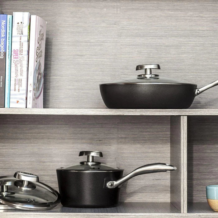 A saucepan is ideal for preparing e.g. sauces and porridge, and a good size of pot for small portions. The Pro IQ saucepan has the famous non-stick coating from SCANPAN, very solid and really easy to clean. The ergonomic handle makes it easy to get a good grip for stirring and whipping. The Pro IQ range is manufactured in Denmark, made from recycled aluminium with respect for nature and environment.