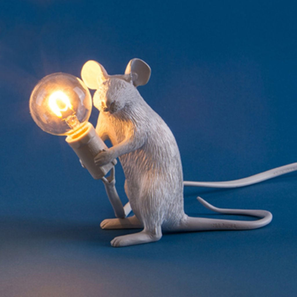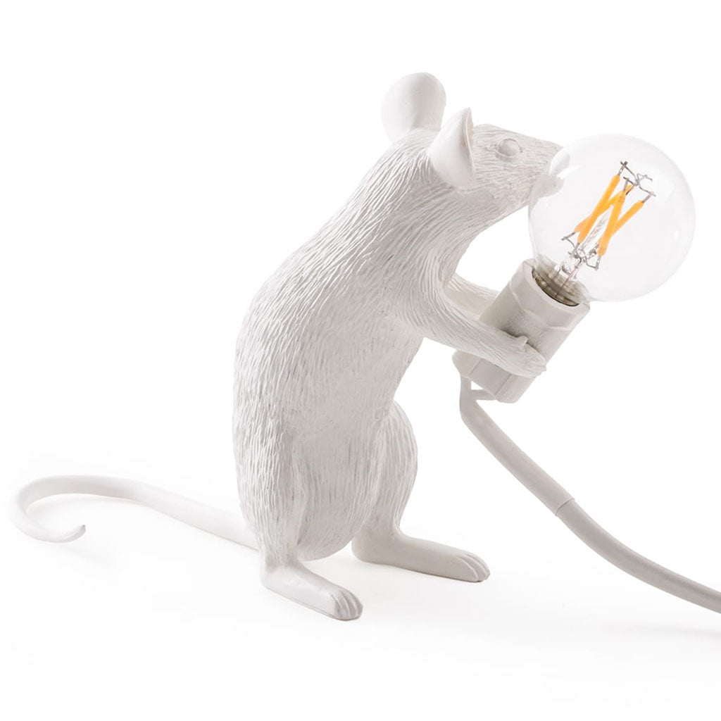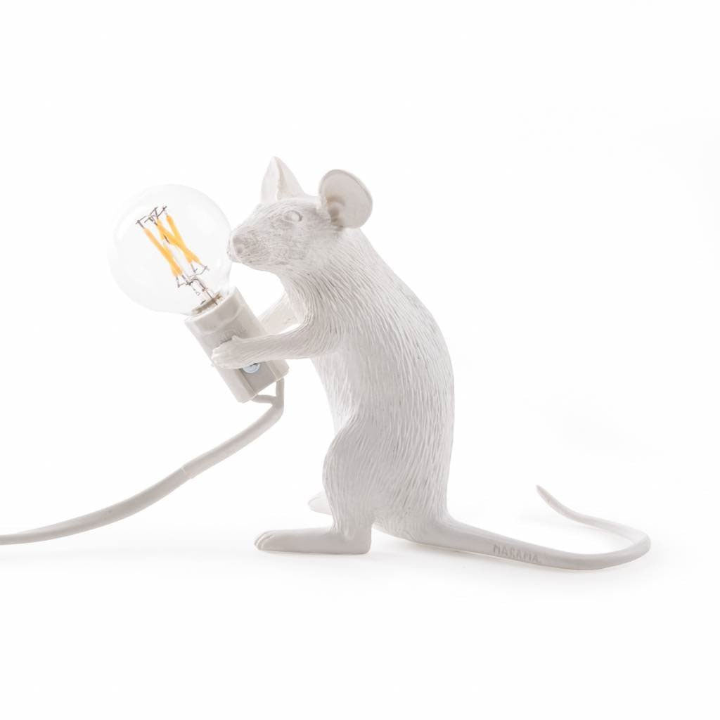 Seletti Mouse Sitting Table Light White - Three little white mice with a very realistic finishing. They are Step, Lop and Mac and they run around the house looking for bizarre objects. They light up their way at night with their little bulbs. Outlandish sculpture that will not go unnoticed.