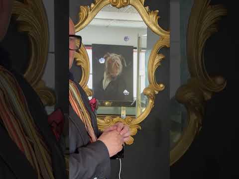 The memory of the past reassembles today in a new fashion. While the mirror itself inverts the direction of light since ages, the animated eyes trade place of the observer and reverse the function of the mirror: while our image is reflected, the eyes are looking at us and the surroundings.