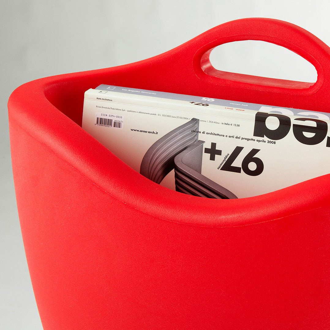 The design of Mag adapts to the continuous evolution of contemporary space, thanks to its simple and essential shape: the magazine rack is a versatile object suitable for every kind of indoor settings. Mag is a magazine rack not only aesthetic, but also functional, thanks to its comfortable handle, that is the naturally development of its sinuous shapes. Mag creates a colourful corner in every private houses or contract.