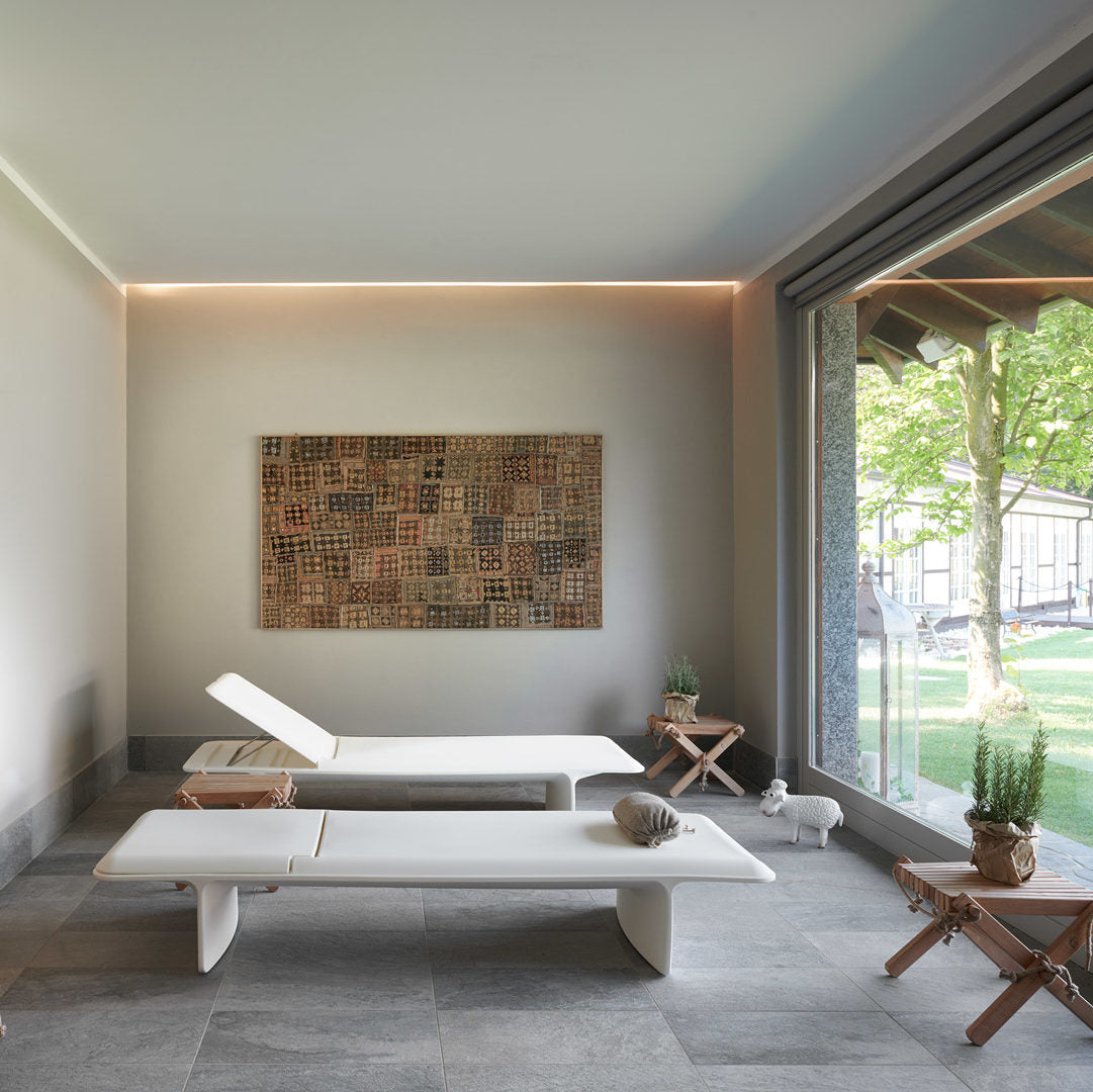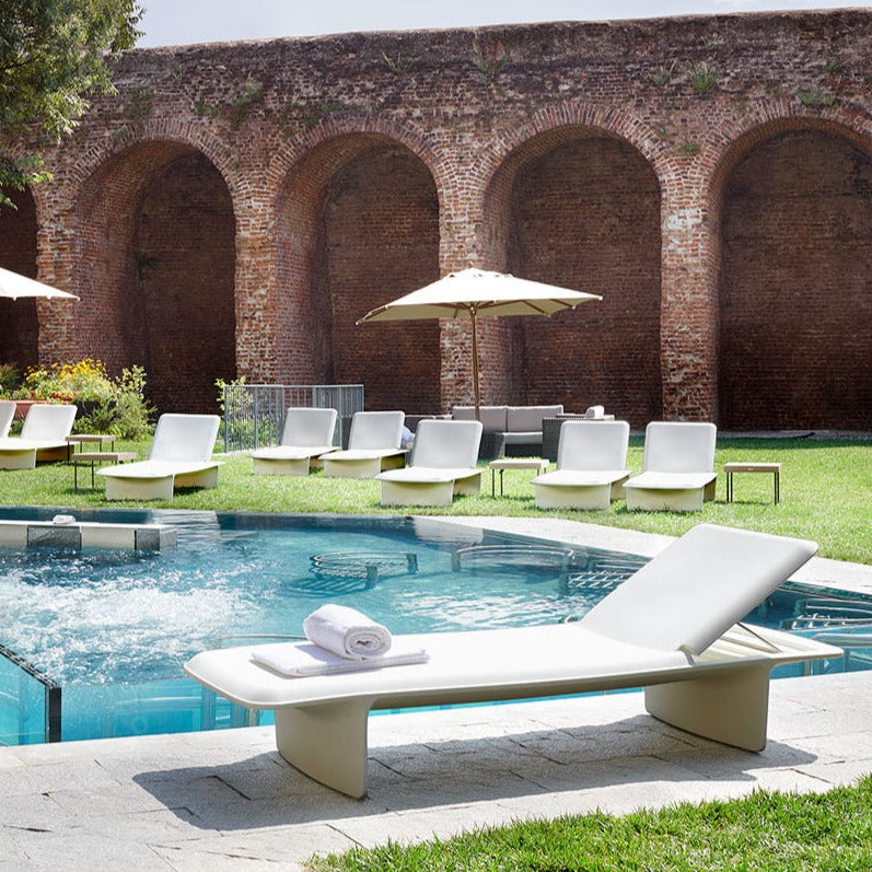 The perfect balance between soft shapes, typical of the creations obtained through rotational moulding, and thin thickness, which allows to reduce the physical and perceptive weight of a large object. Its design is inspired by the architecture of bridges, for this reason it covers large lengths in spite of reduced sections. Comfortable and cozy, thanks to the adjustable backrest in different inclinations, Ponente can be used in gardens, pools, resorts, spa and beauty centres.