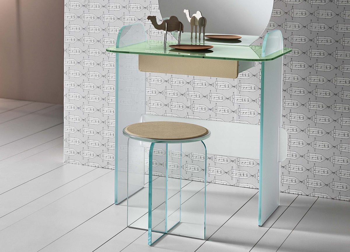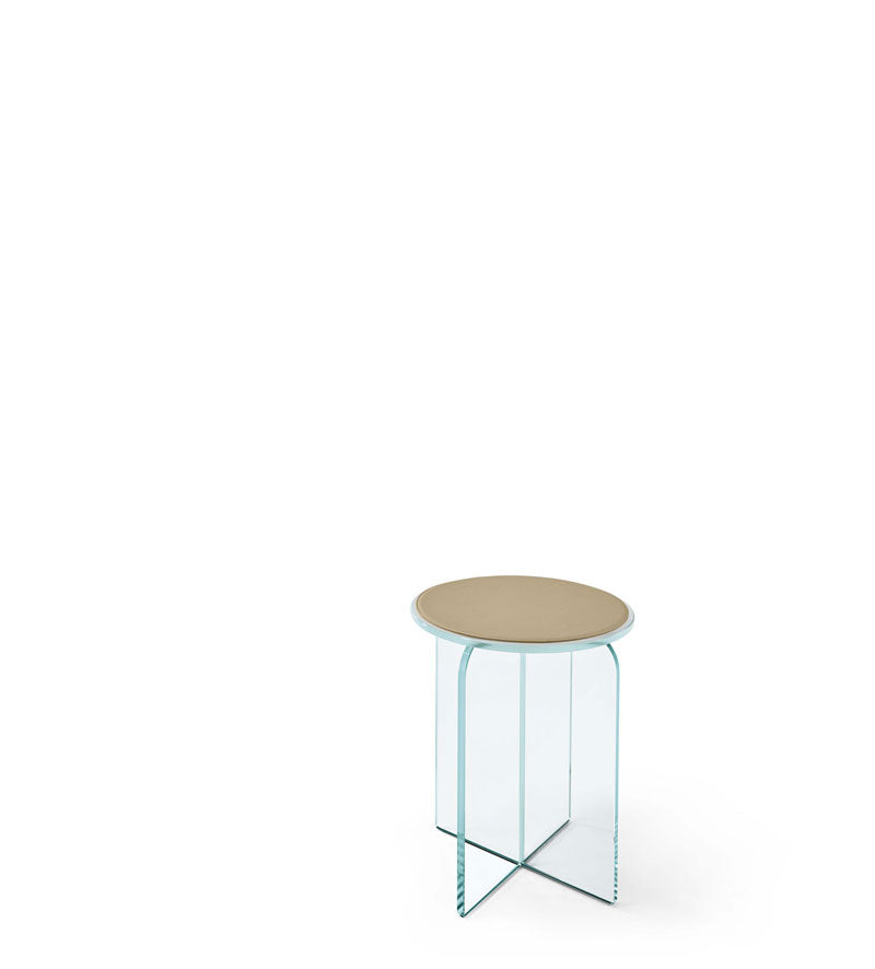 The side table Opalina sgabello results very versatile because thanks to the possibility to add an appropriate pillow in beige leather it can easily become a small stool.