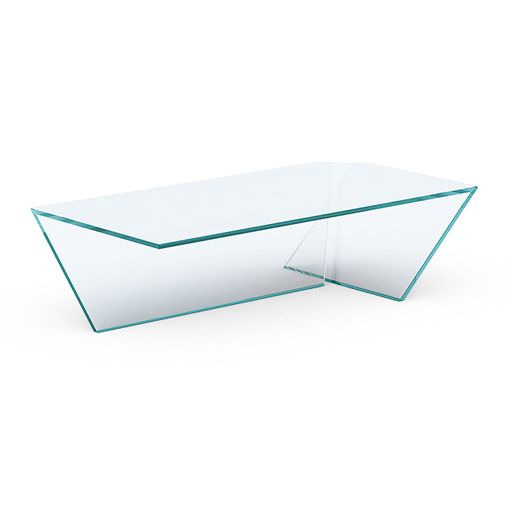The Ti coffee table is ideal for the living area and is made of welded glass, which makes the product design homogeneous and linear. The Ti coffee table is available in transparent or extra clear glass finishes and with inclined sides to adapt to any space requirement and furnishing style.