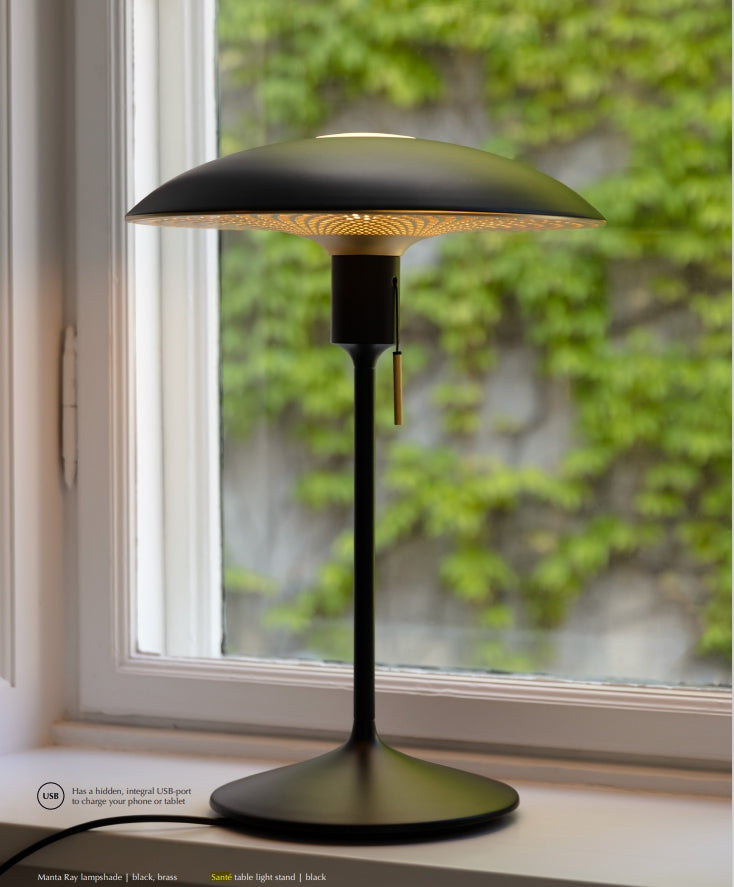 Available in white, black, brushed steel or brushed brass the Santé table can be paired with a large variety of our UMAGE lampshades.