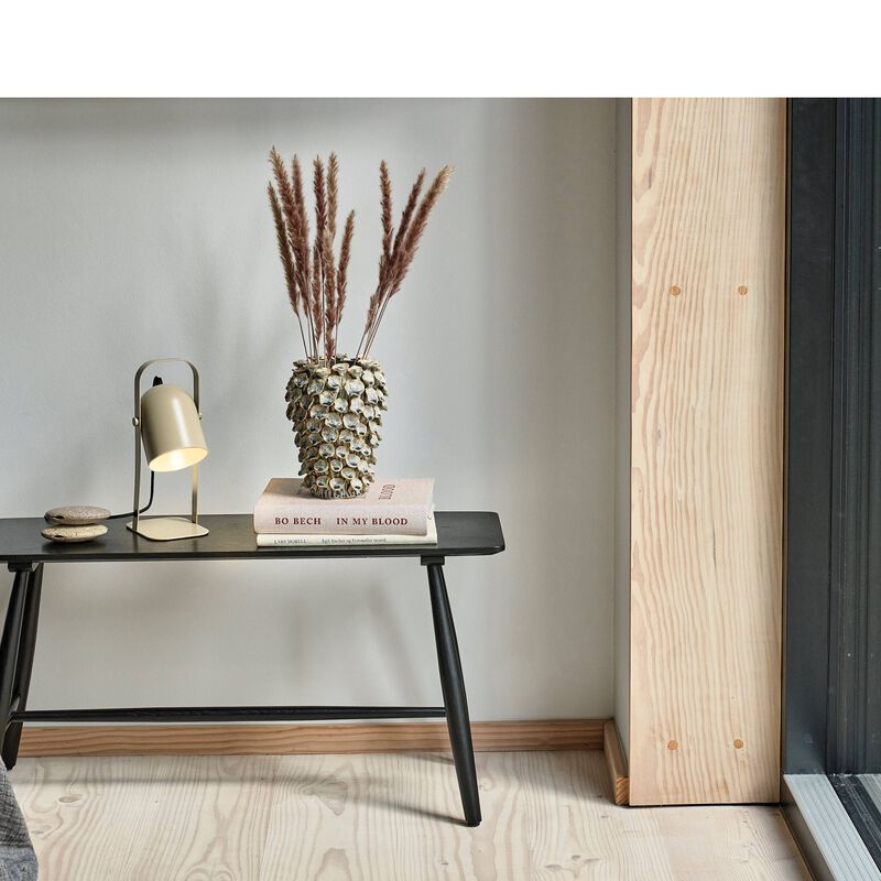 Black painted oak bench. This simple and elegant design fits perfectly into a Scandinavian interior with a relaxed atmosphere.