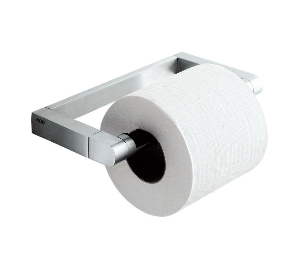 The Vipp toilet roll holder is a part the Vipp bathroom collection. The Vipp toilet roll holder features a discreet opening and closing mechanism, and a rubber-coated groove holds the toilet roll in place.