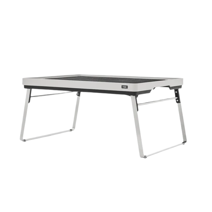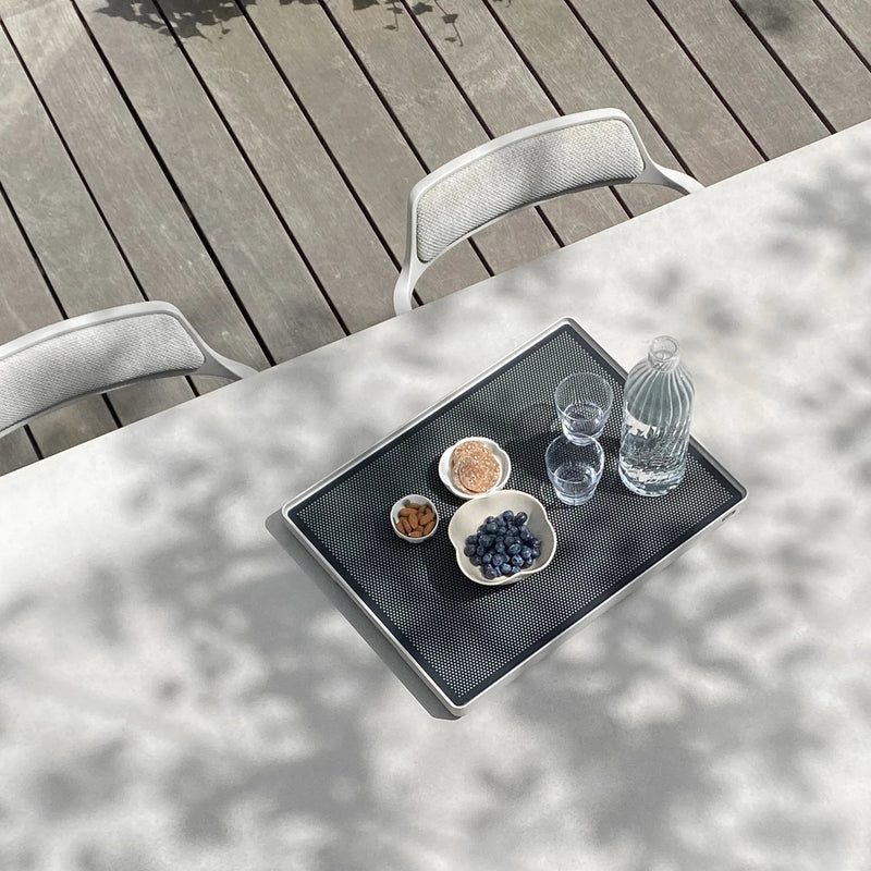Reimagined for the outdoors, the Vipp tray table, is now available in a light grey colour and part of the Vipp Open-Air outdoor collection. The Vipp Open-Air tray table features durable rubber and aluminium details, with rubber edges on the table and feet to protect surfaces.