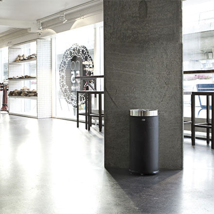 The office bin is fitted with discreet rubber wheels, and a hidden metal ring keeps the bin liner in place.