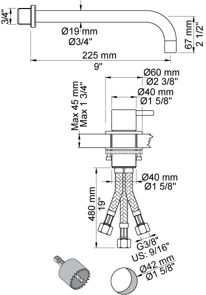 Vola 520 Mixer w Wall Spout