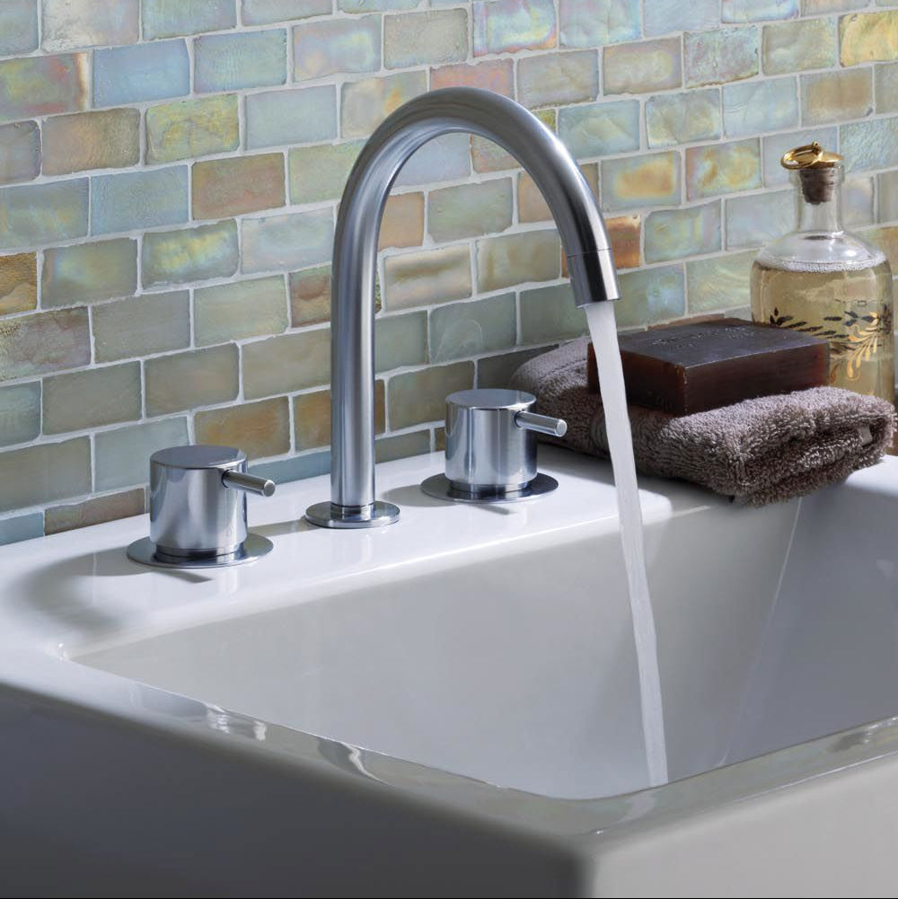 The Vola Arne Jacobsen KV10 Mixer Combination Tap is available in brushed stainless steel, high polished chrome, brushed chrome, natural brass and 14 bright colours.