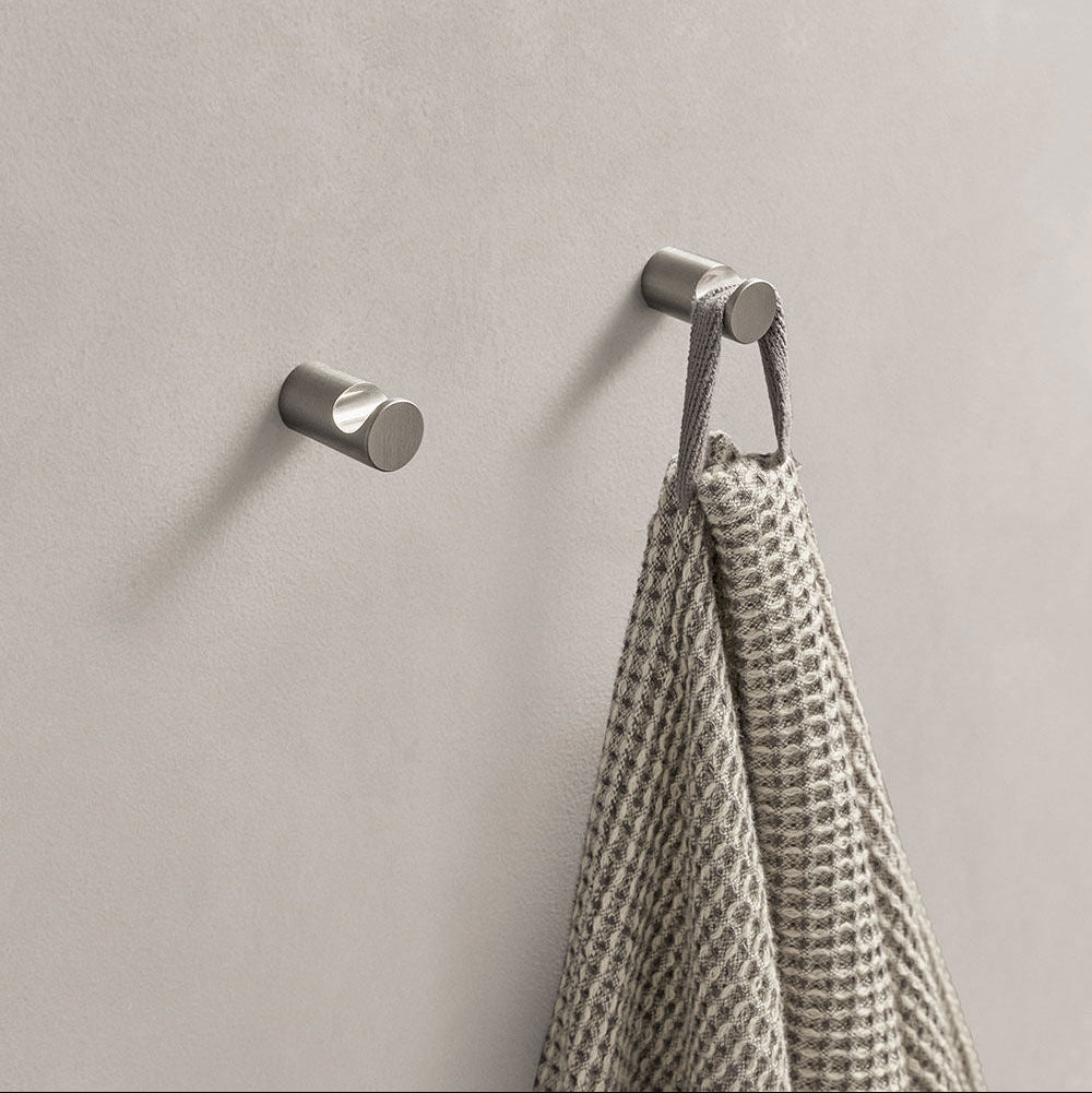 Vola Arne Jacobsen Wall Hooks 28mm 4pcs Set is available in brushed stainless steel, high polished chrome, brushed chrome, natural brass and 14 bright colours.